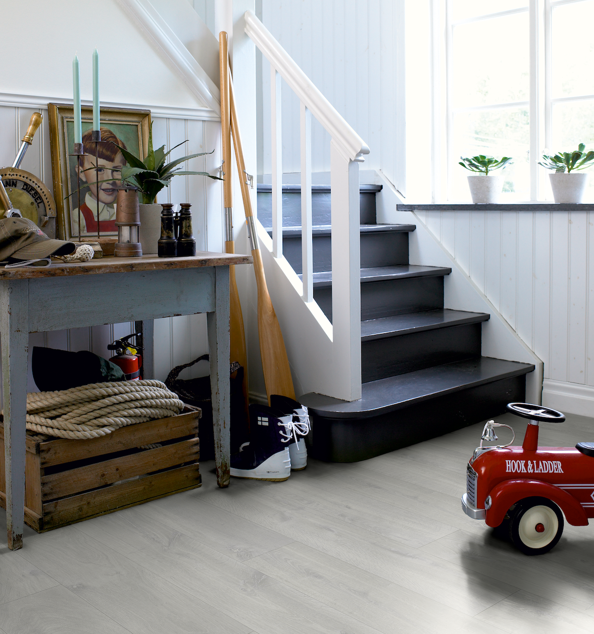 Limed grey oak føles og ser ut som et gulv som er slitt av sol og sand, noe som gir et maritimt preg til ethvert rom.