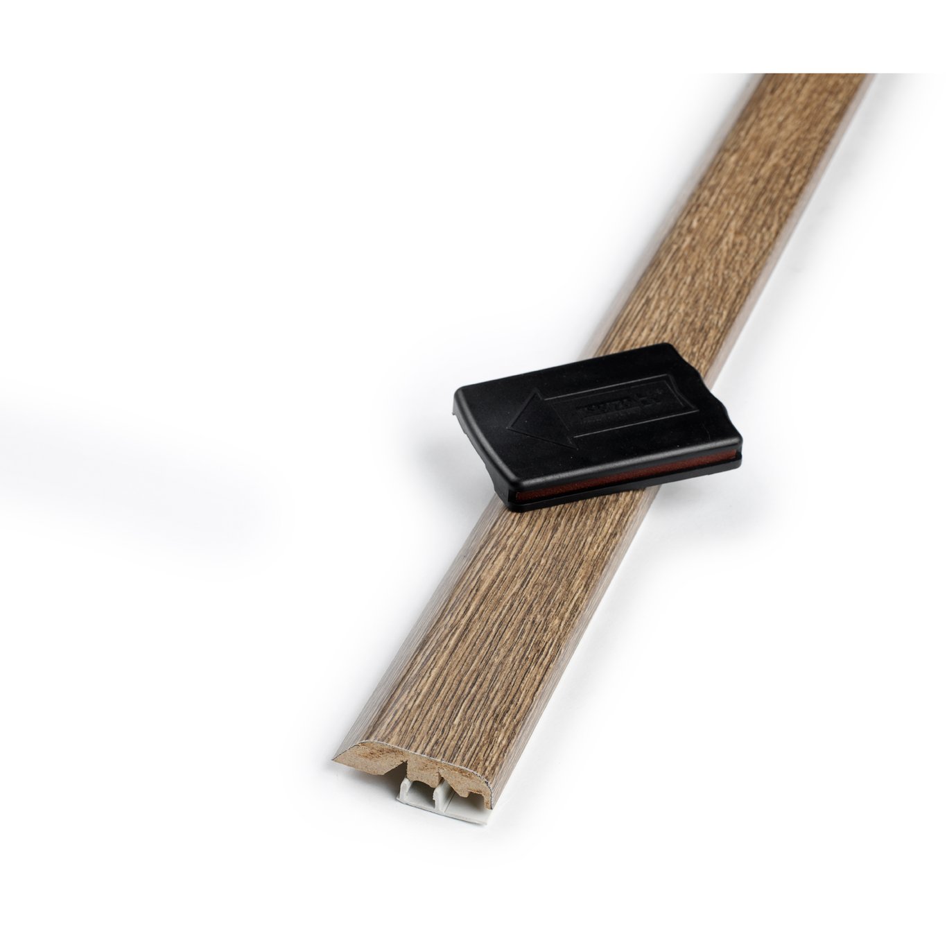 Med den patenterte Incizo-kniven som følger med kan du enkelt kappe listen til den type list du ønsker. T-list, overgangslist til tepper og harde gulv, avslutningslist og trappenese.