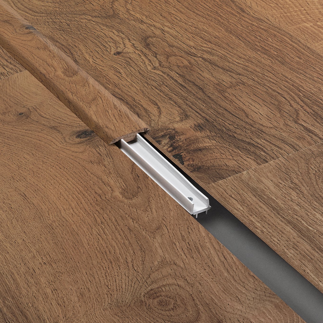 Disse t-listene fra BerryAlloc benyttes for å forbinde to gulv i samme høyde. Profilen er justerbar for høyder fra 9 til 15 mm.
