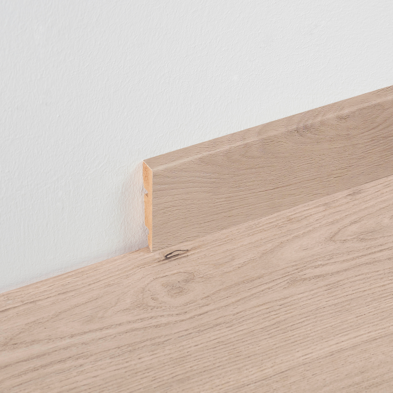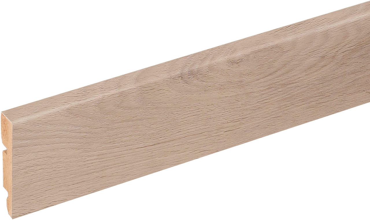 Disse sokkellistene fra BerryAlloc passer til gulv i samme dekor, og gir rommet et helhetlig uttrykk. Listene installeres med lim eller clips.