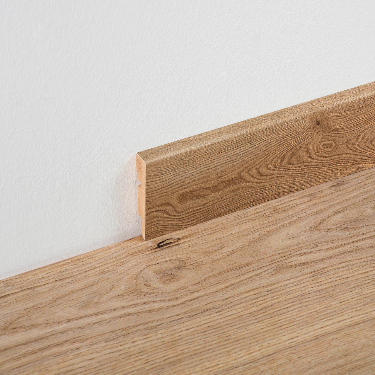 Disse sokkellistene fra BerryAlloc passer til gulv i samme dekor, og gir rommet et helhetlig uttrykk. Listene installeres med lim eller clips.