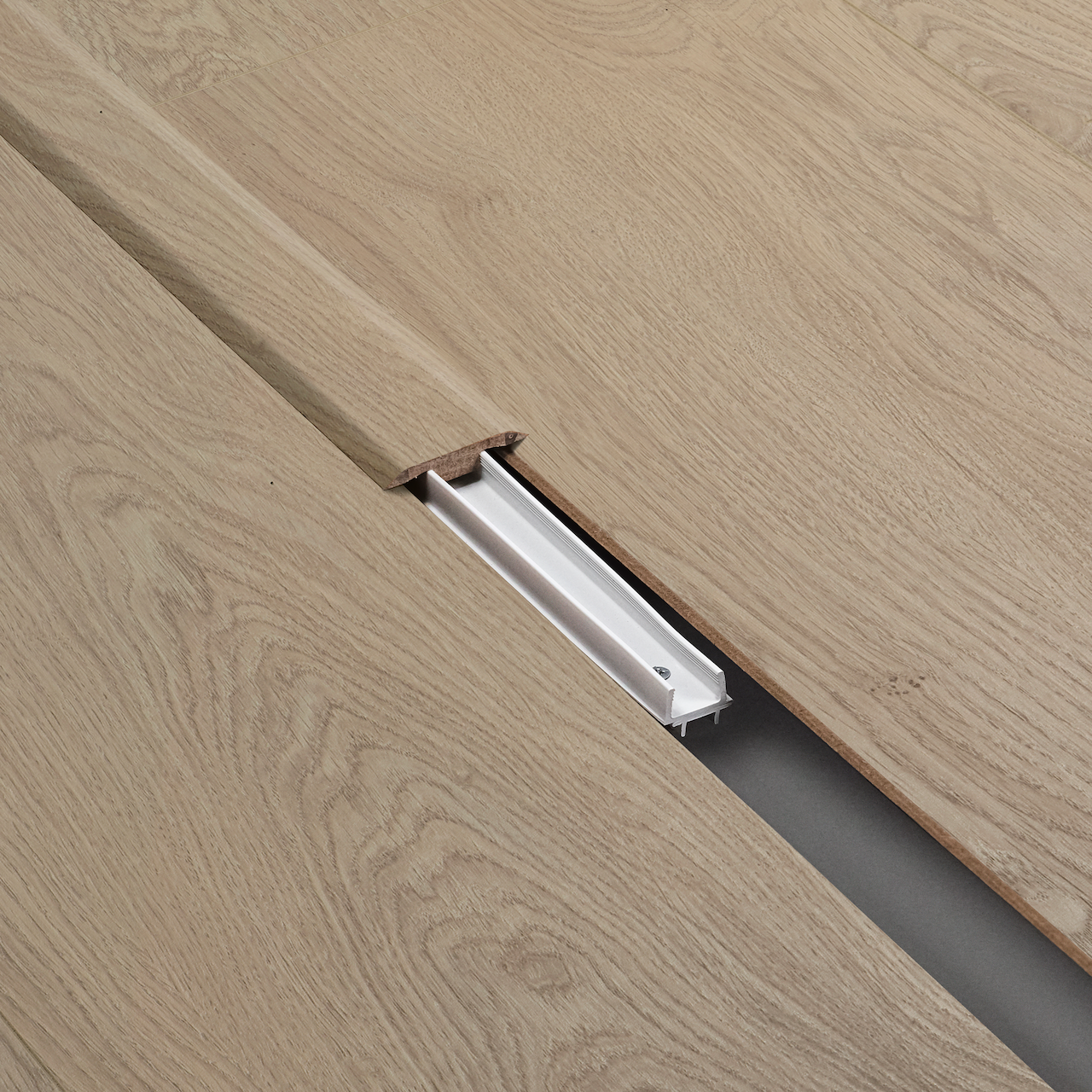 Disse t-listene fra BerryAlloc finnes i samme dekor som laminatgulvene, og benyttes for å forbinde to gulv i samme høyde. Profilen er justerbar for høyder fra 9 til 15 mm.