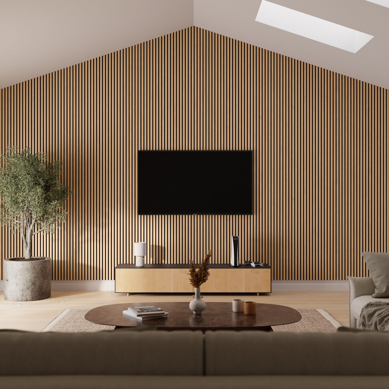 By Venø Premium Akustikkpaneler bidrar til å forbedre akustikken, redusere støy og skape en behagelig atmosfære. De bryter og absorberer lyd effektivt, slik at du slipper lydrefleksjoner og lang etterklangstid – ideelt for både private og profesjonelle miljøer. Den unike kombinasjonen av lameller og akustisk polyesterfilt sikrer ikke bare effektiv lydabsorbering, men forbedrer også innemiljøet.