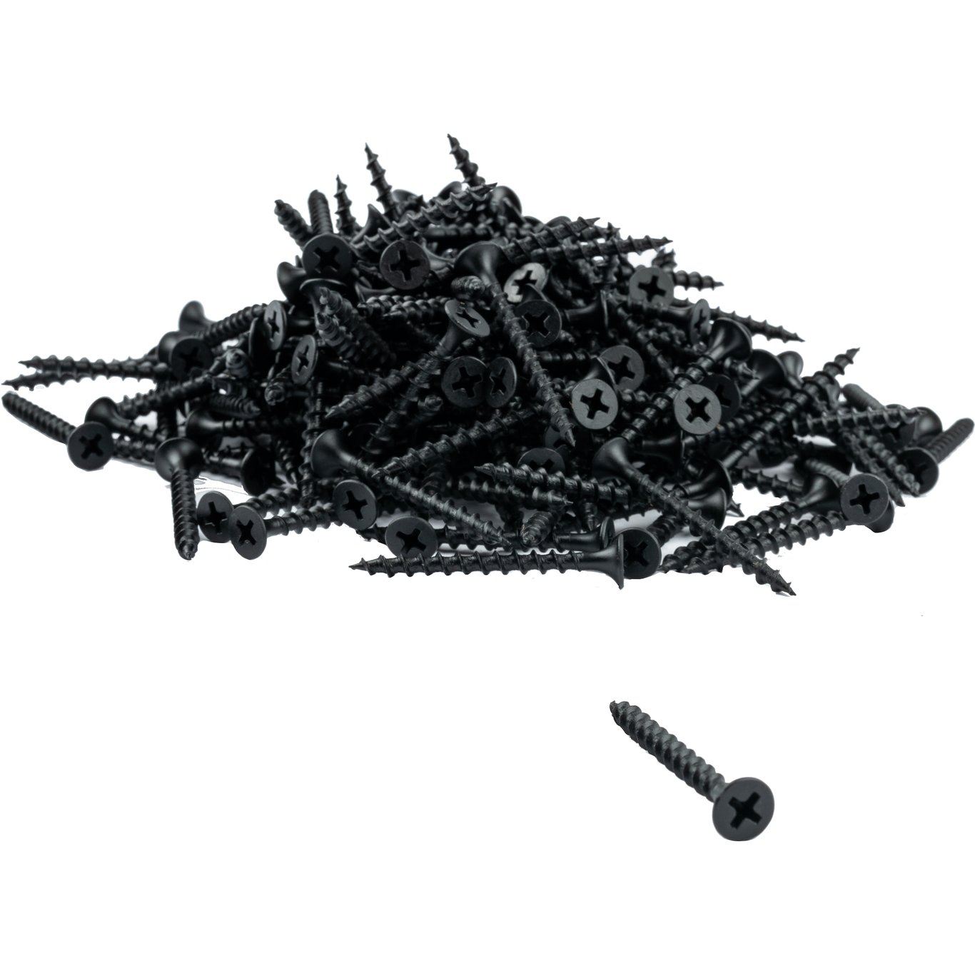 Sorte skruer for montering av Lind Spileelement. Ved normal montering forbrukes 20 skruer per plate.