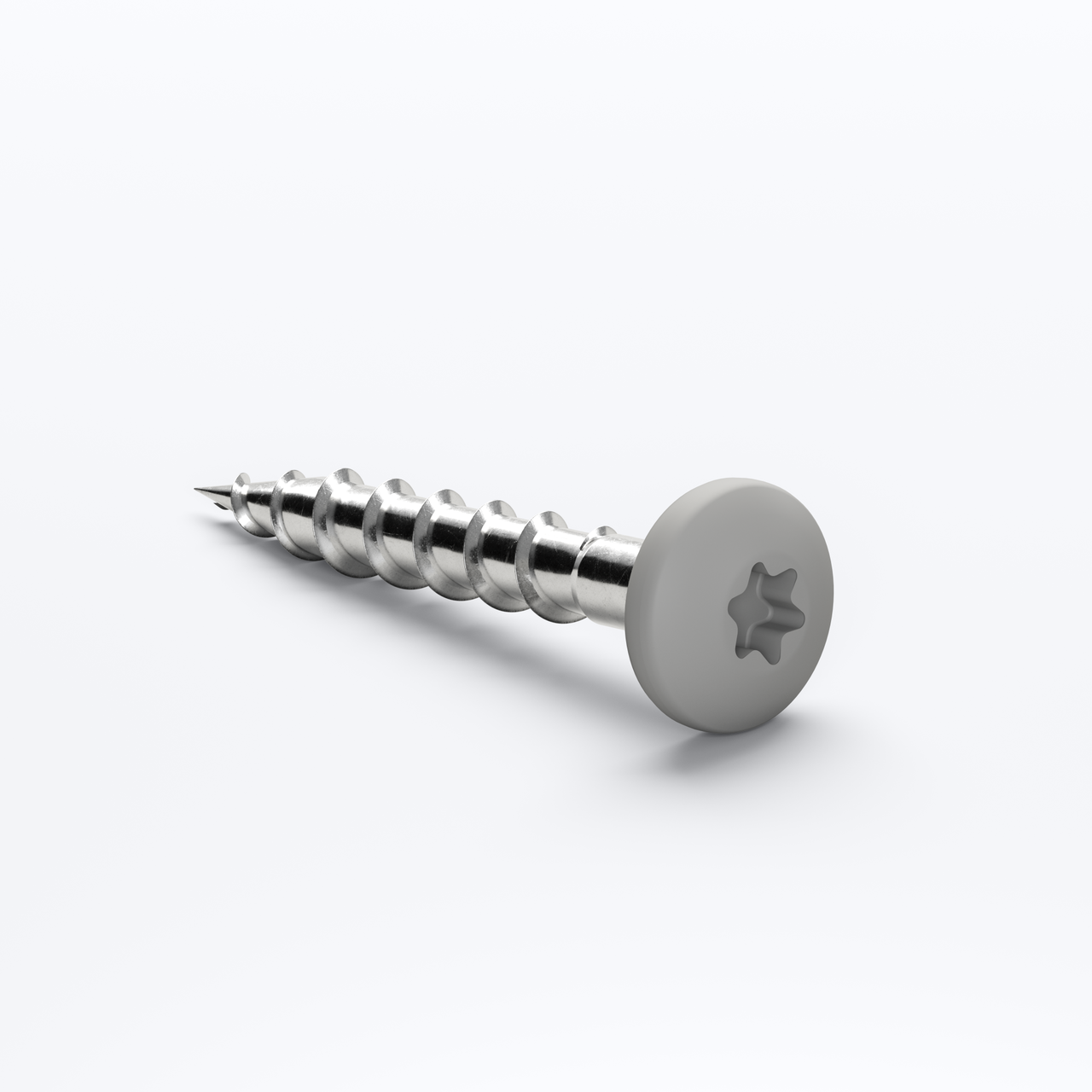 Skruer for montering av steniplater til understøttende materiale av treverk. Bit til Torx20-skruer følger med i pakken.