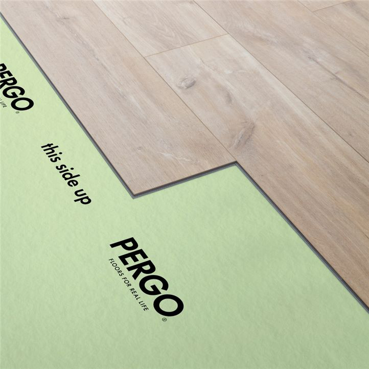 Pergo underlag til vinylgulv. Underlaget kan brukes i kombinasjon med både flexvinyl og rigid vinyl. Det påvirkes ikke av eksterne faktorer som varme og høy trafikk, og er derfor med å sikre formstabiliteten til gulvet. Underlaget legges ved at de rulles ut og sidene teipes. Tykkelse 1,15 mm, 15 m2 per rull.