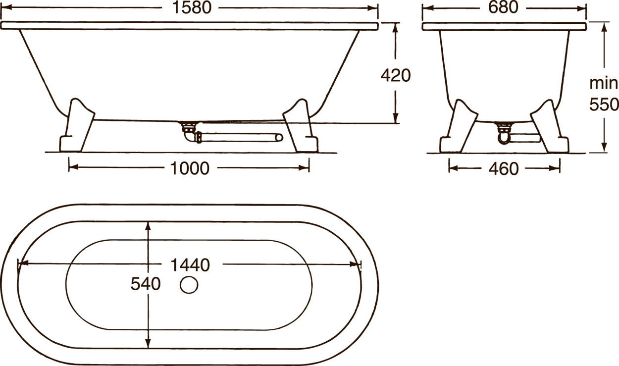 Badekaret kommer med bunnventil og avløpssett, men uten ben. Bensett finner du her.