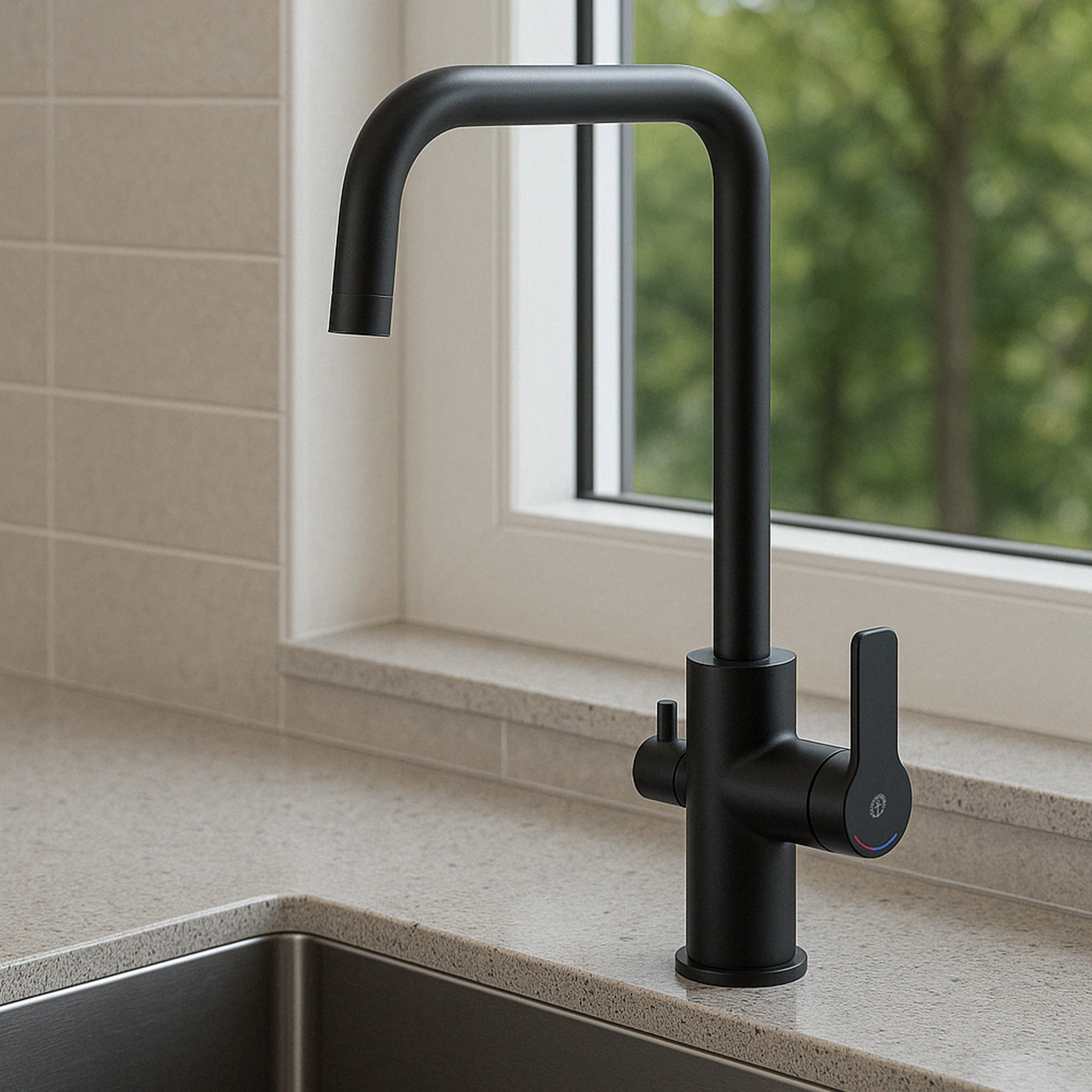 GUSTAVSBERG EPIC KJØKKENKRAN M/AVSTENGNING MATT SORT