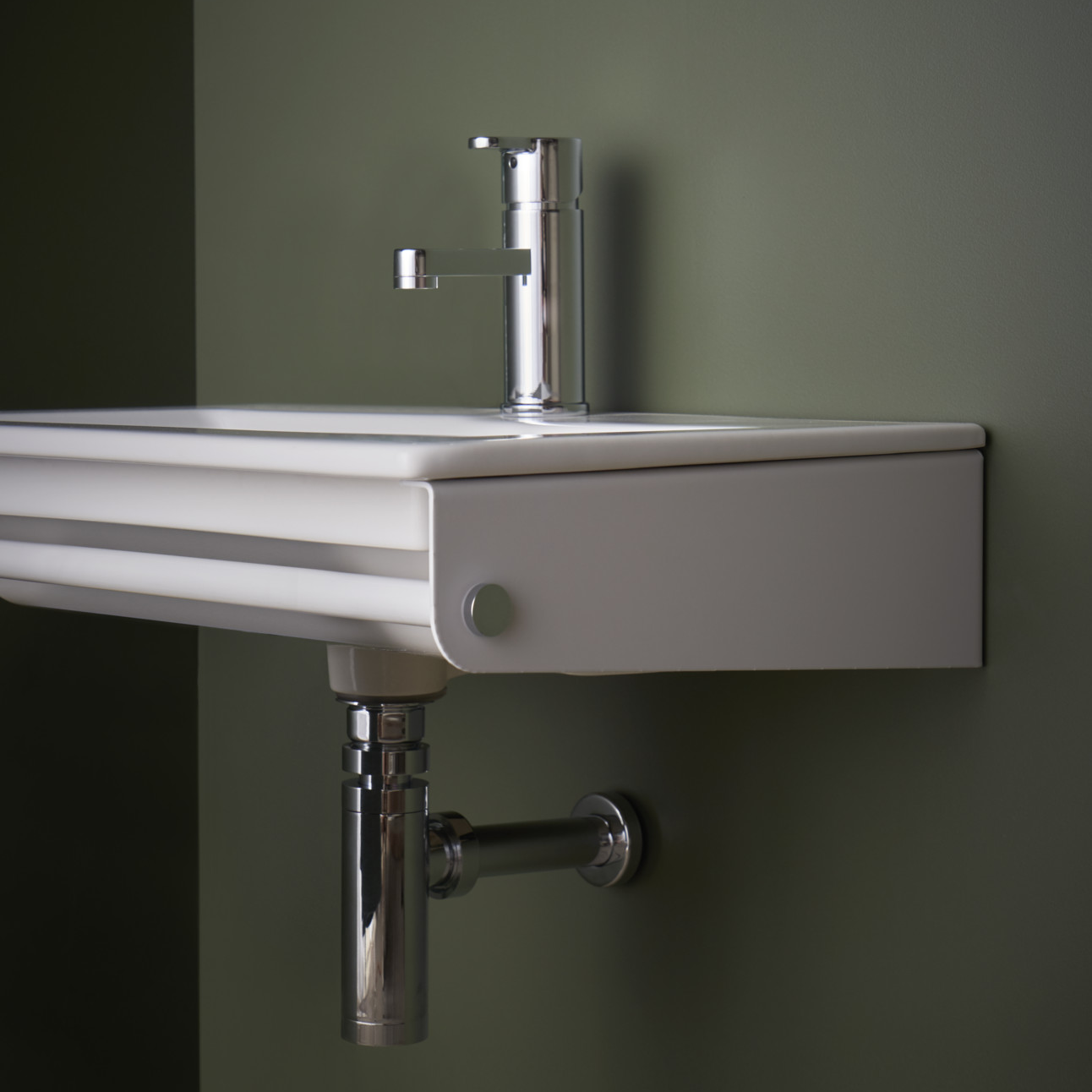 Elegant veggopphengPraktisk håndklestang i frontPasser perfekt til Gustavsberg Graphic servant