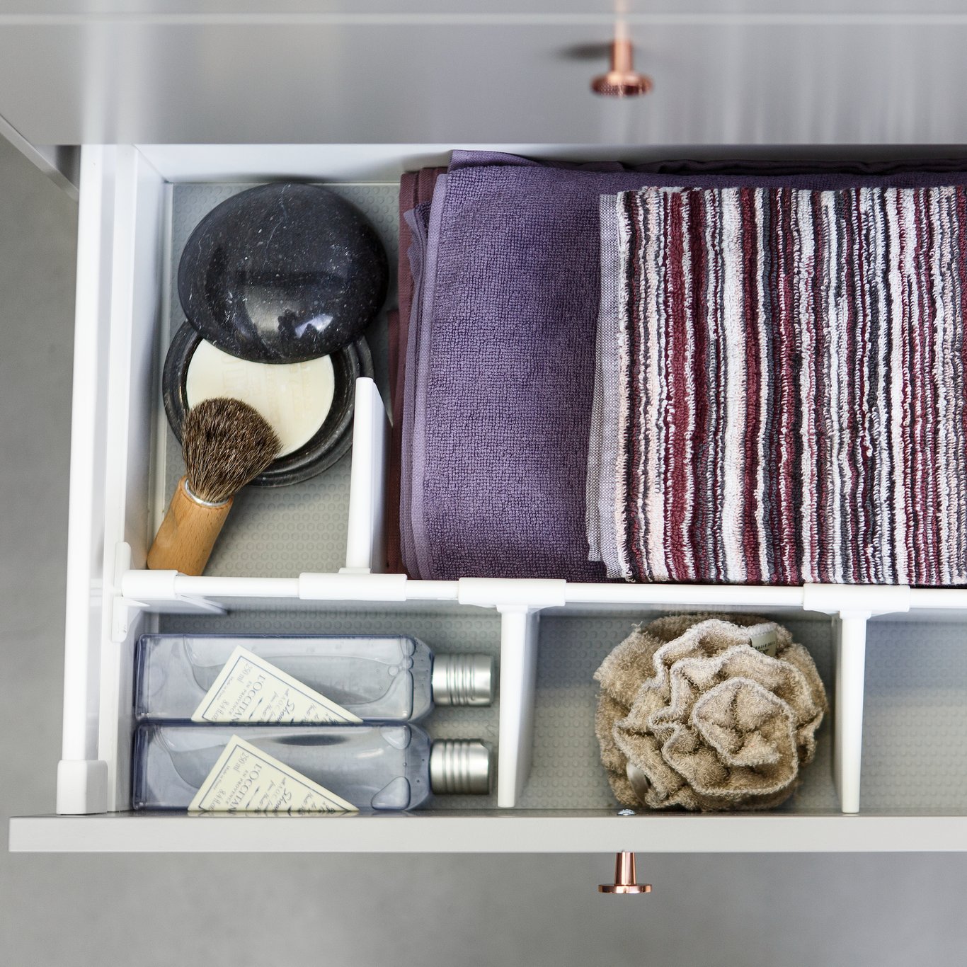 Praktisk justerbare skuffeinnsats i 100 cm til Gustavsberg Graphic møbler. Passer til øvre og nedre skuff.