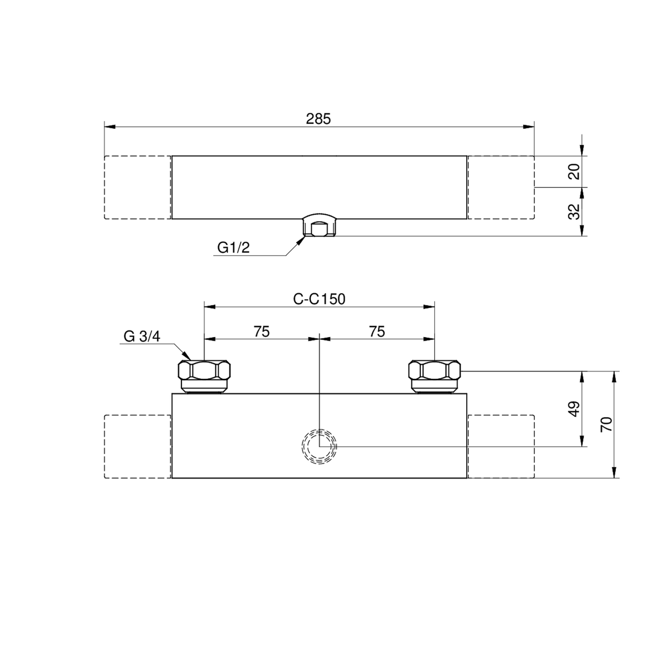 • C-C: 150 mm