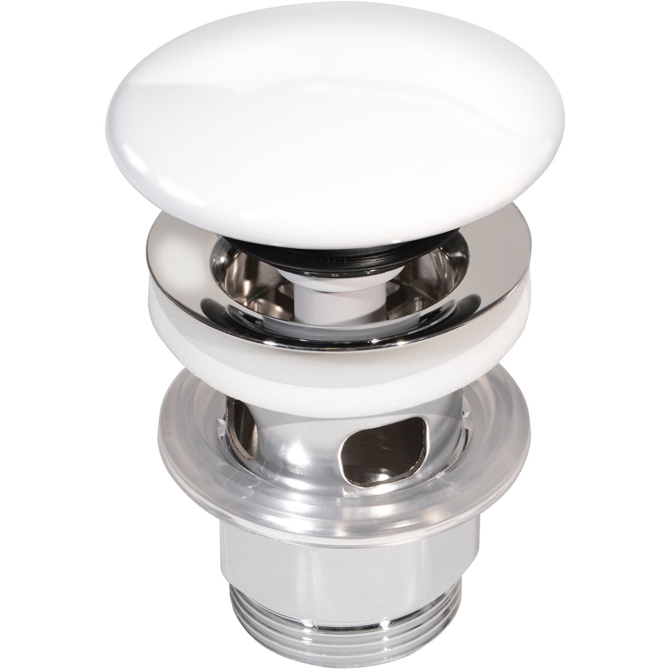 Pop-up bunnventil i hvit til servant.
