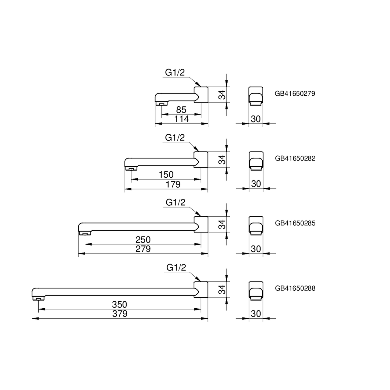 Svingbar tut fra Gustavsberg som er rett og mulig å låse i posisjon, samtidig som den passer til de fleste blandebatterier fra Gustavsberg.