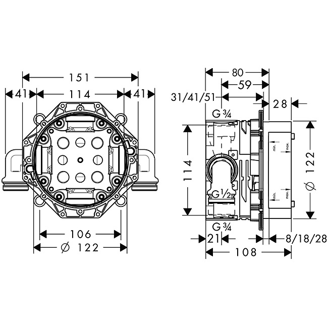 Hansgrohe ibox universal m/lekkasjesikring. innbyggingsdel