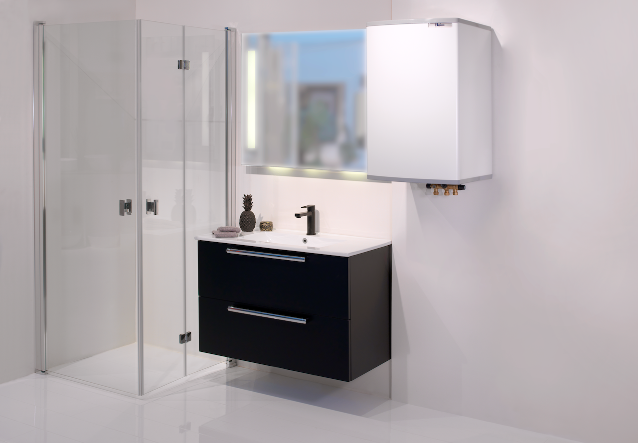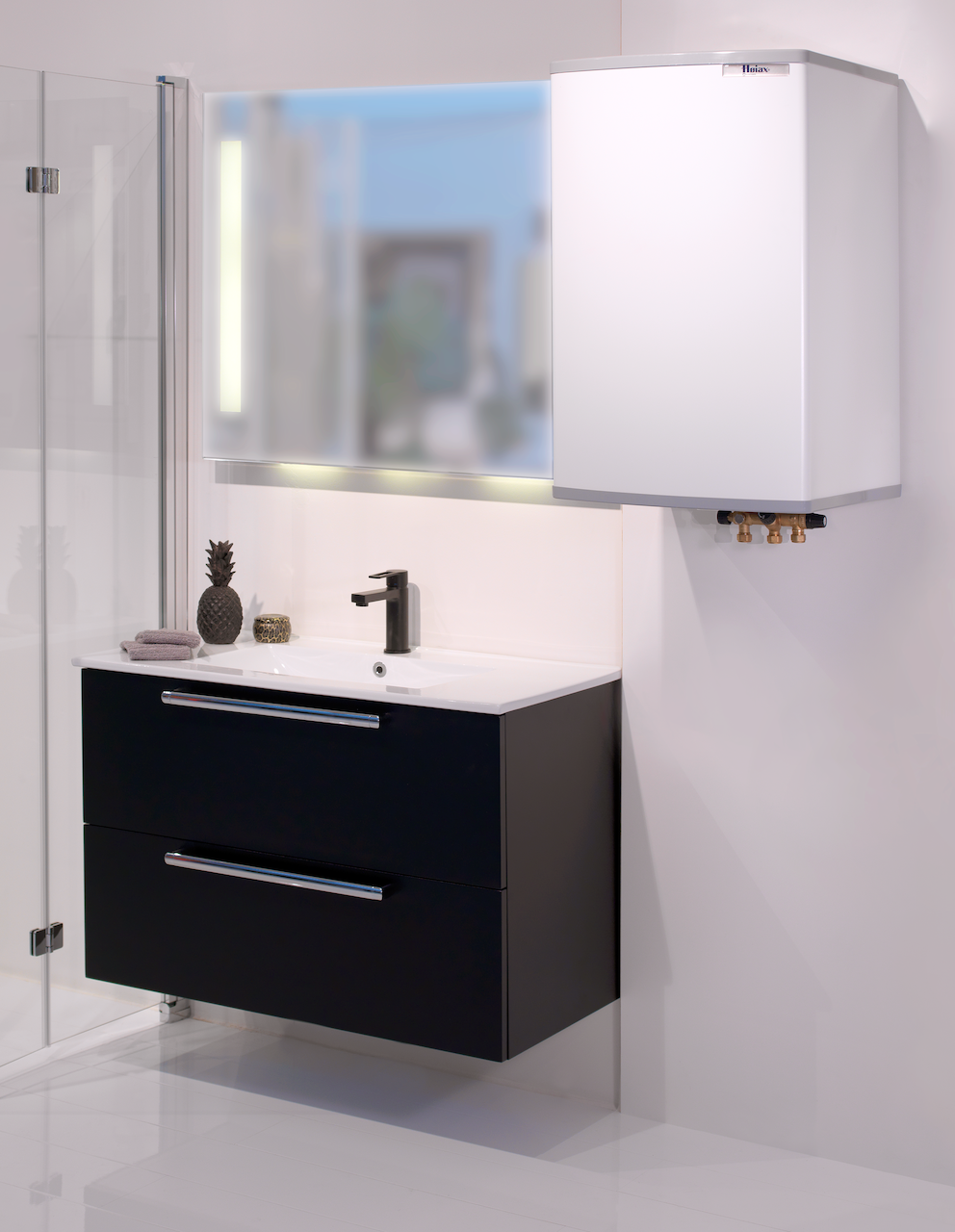 Veggberederne er skumisolerte for å gi minimalt varmetap. De leveres med Aquatemp termostatisk to-rørs blandeventil. 60 liter.