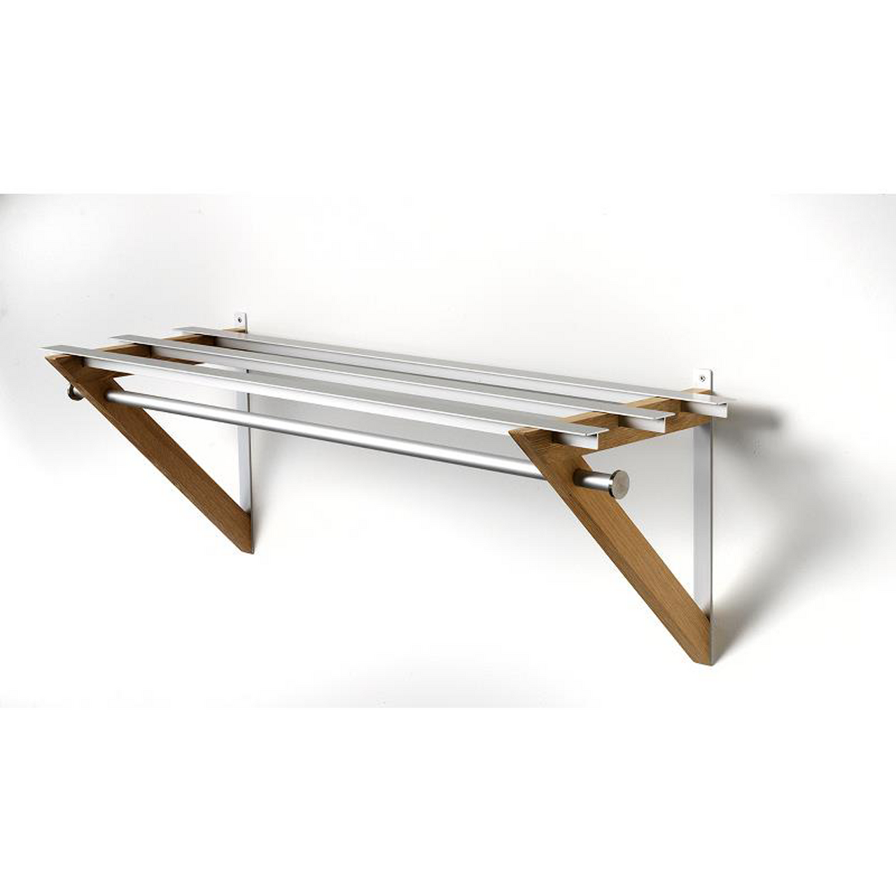 Denne hattehyllen fra Hoigaard kommer med gode oppbevaringsmuligheter for både frakker og jakker på kleshengere, samt en hylle til diverse gjenstander.