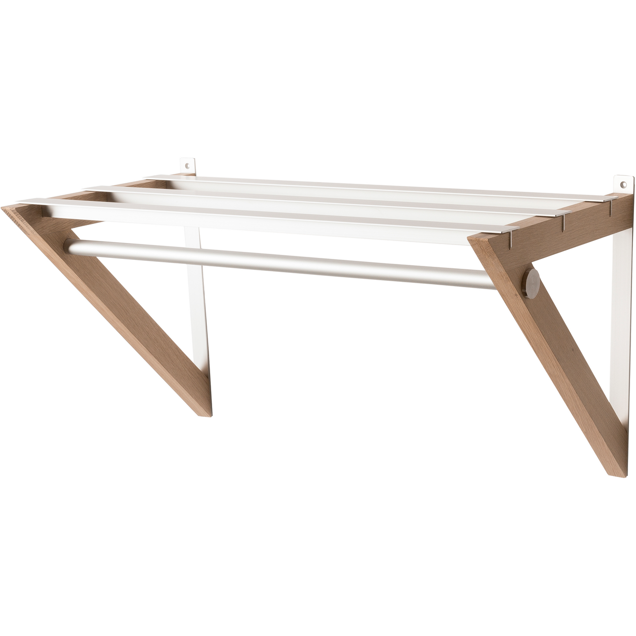 Denne hattehyllen fra Hoigaard kommer med gode oppbevaringsmuligheter for både frakker og jakker på kleshengere, samt en hylle til diverse gjenstander.