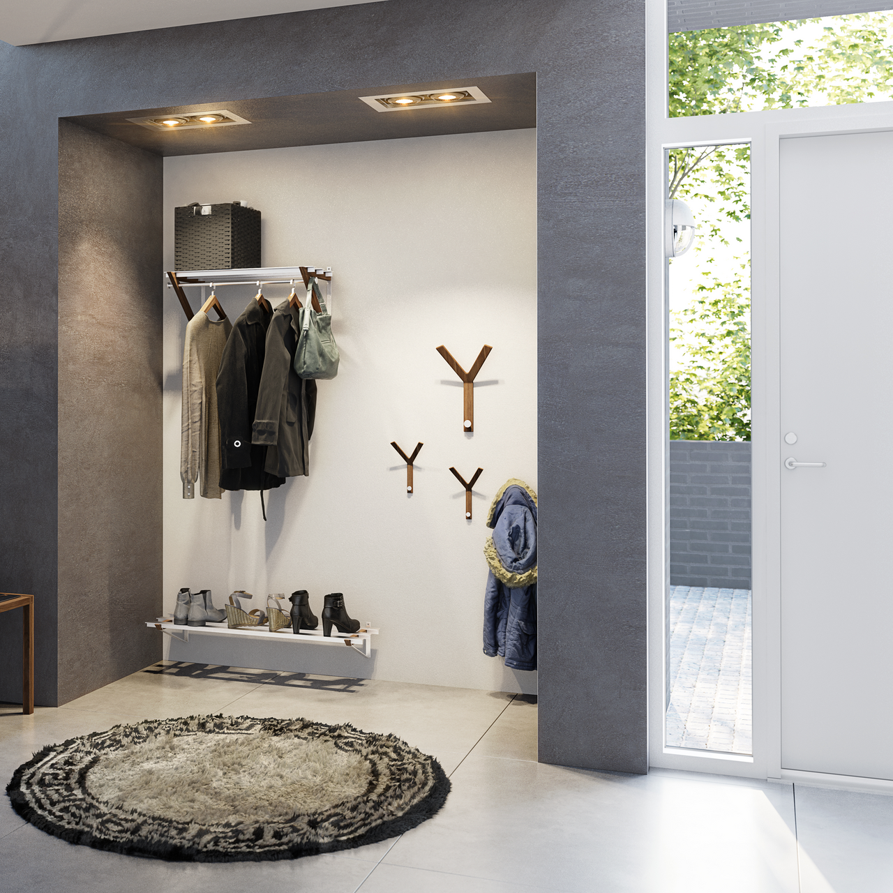 Denne hattehyllen fra Hoigaard kommer med gode oppbevaringsmuligheter for både frakker og jakker på kleshengere, samt en hylle til diverse gjenstander.