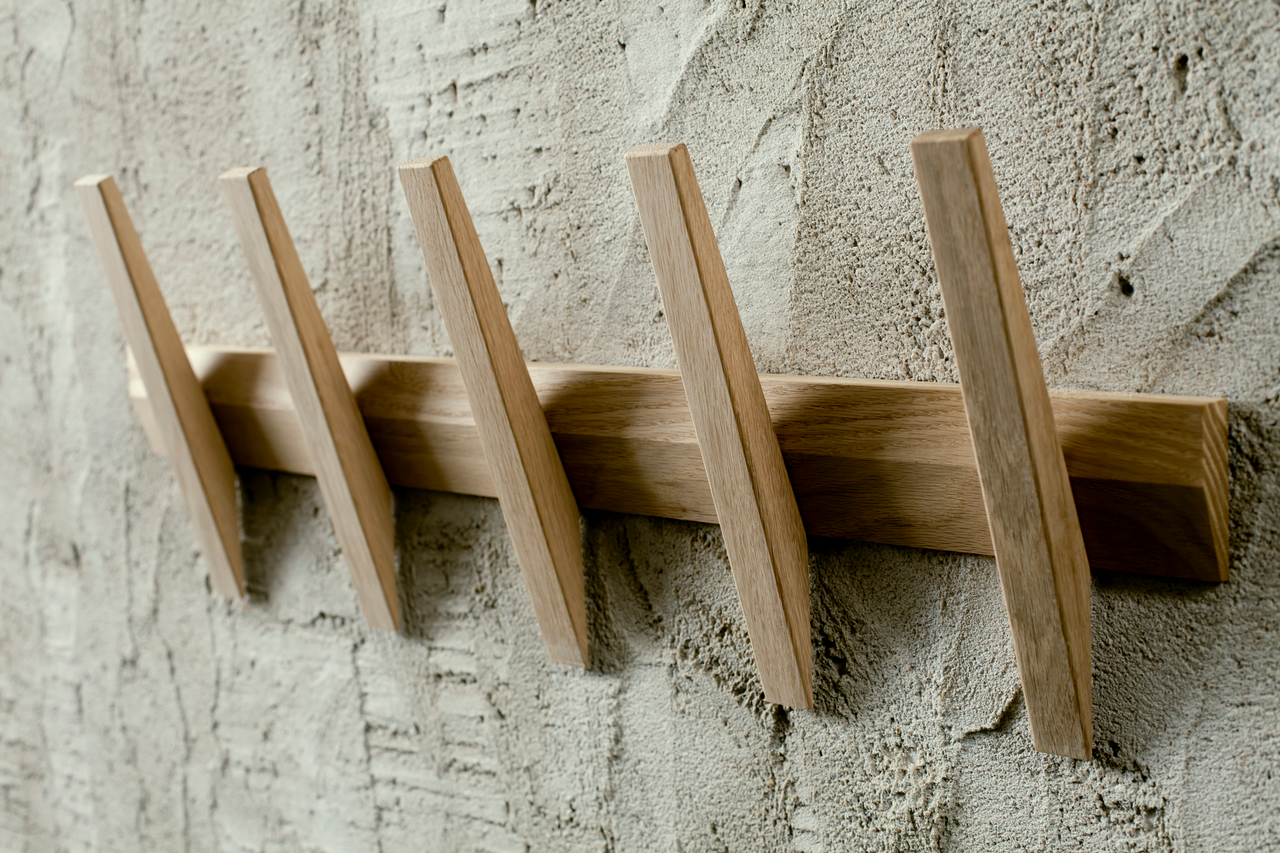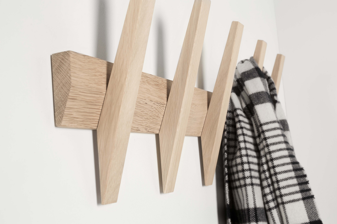 Knaggerekken er laget av naturlige materialer og gir en elegant og moderne finish. Designet er enkelt og minimalistisk, som gjør knaggerekken både praktisk og dekorativ.