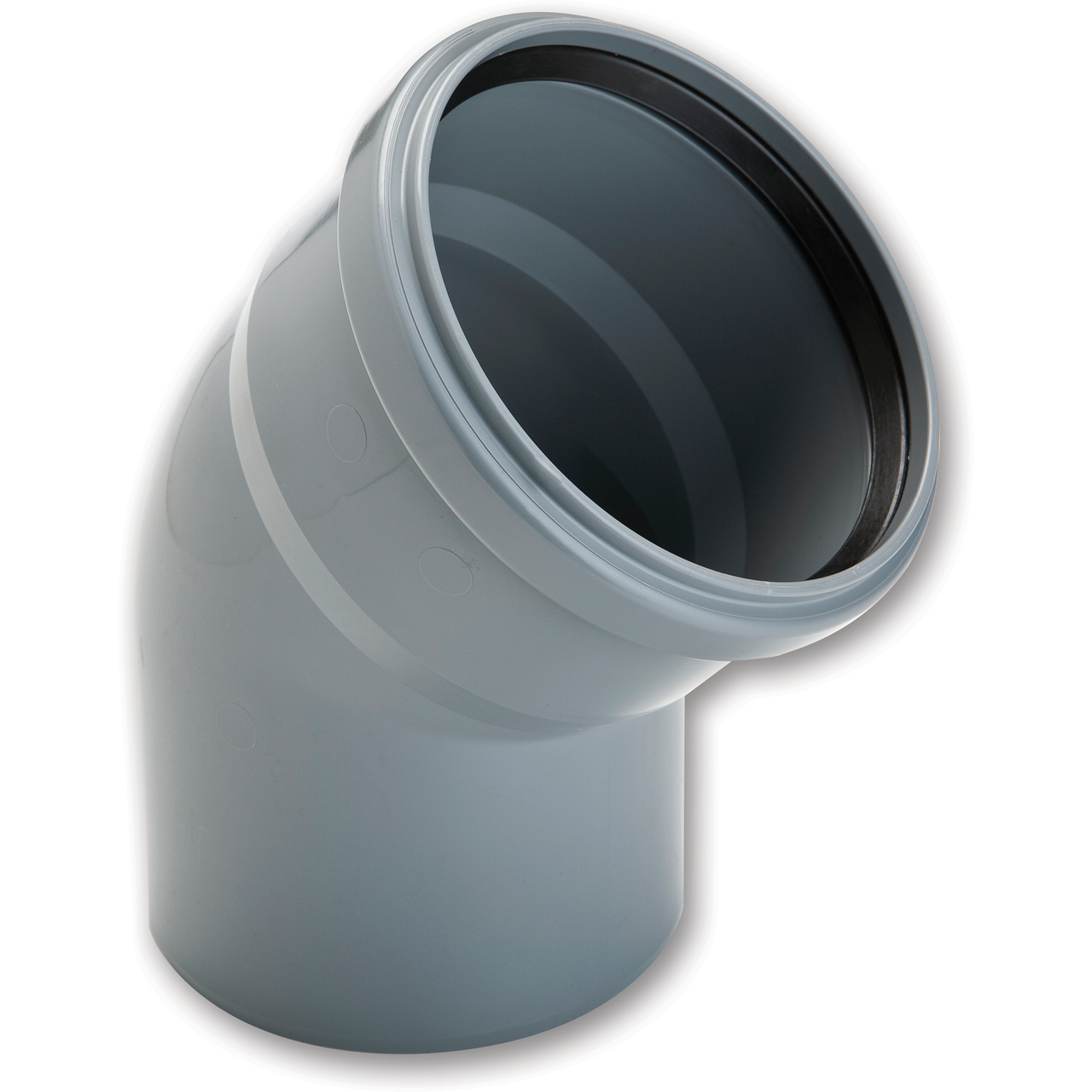 Bend til avløpsrør med muffe i den ene enden og stuss i den andre enden.