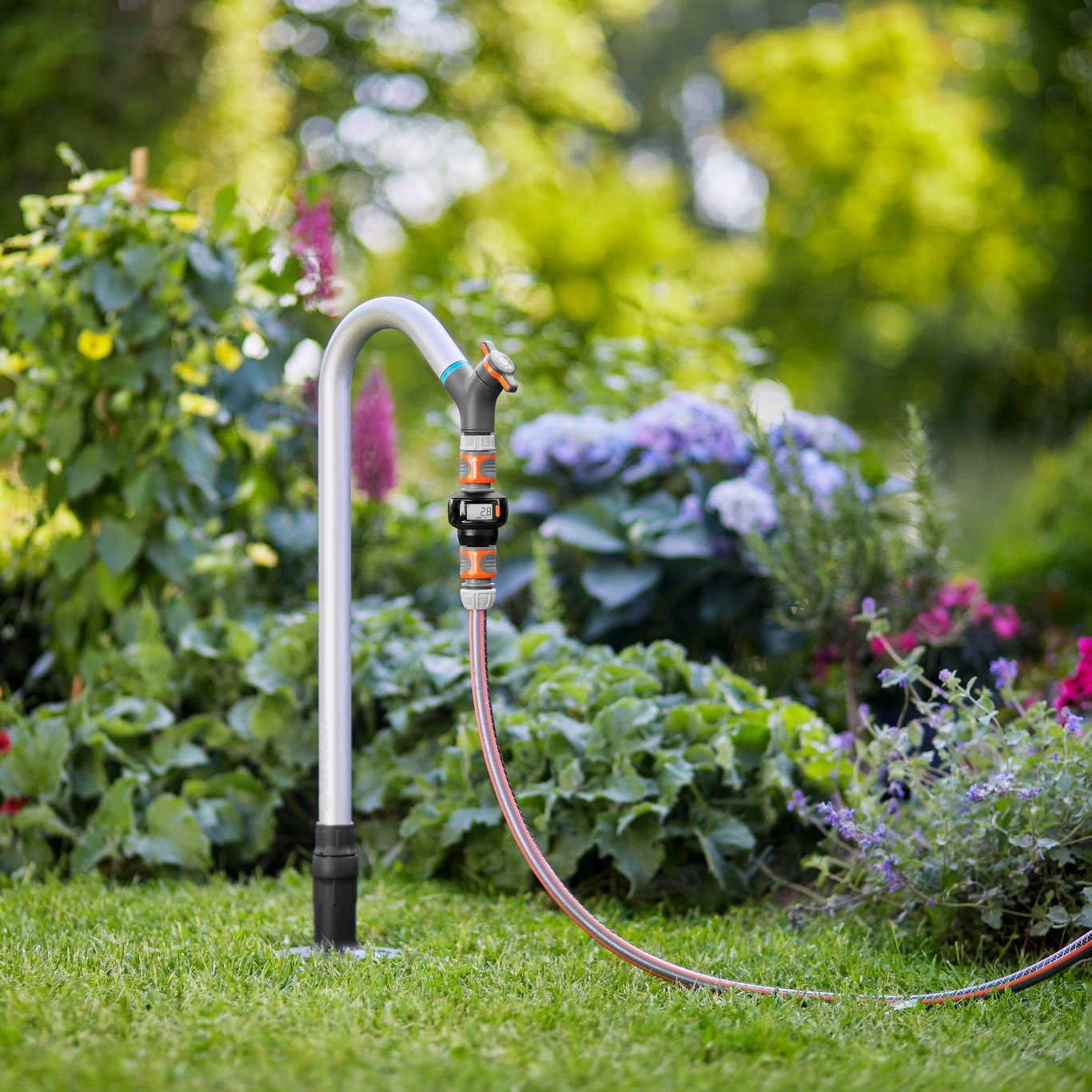Vannmåler AqauCount fra GARDENA er til stor hjelp når du vanner hagen din, både for å måle ditt eget forbruk og for å spare vann. Takket være det medfølgende batteriet er vanmåleren umiddelbart klar til bruk. Den kan kobles til kranen eller til direkte på enden av slangen i horisontal eller vertikal stilling. Den store roterbare skjermen er lett å lese i alle posisjoner, har 4 funksjoner med nyttig informasjon om vannforbruk klart til deg. Med funksjonene 1 og 2 er det totale vannforbruket, .f.eks per dag og per sesong, kan vises individuelt. Funksjon 3 viser det nøyaktige vannforbruket per vanningsprosess og funksjon 4 gir deg innblikk i strømningshastigheten i liter per minutt. Vannmåleren AquaCount er lett å rengjøre, UV-stabil og frostsikker - dette gjør at den kan brukes året rundt.