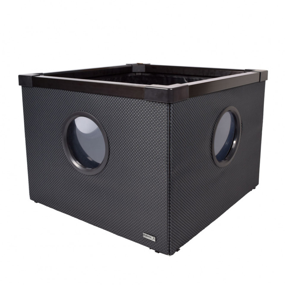 Den hevede dammen er laget av vedlikeholdsfrie plastpaneler med flettet tekstur og har en slitesterk aluminiumsramme som gjør den egnet til utendørs bruk. Takket være de 3 vinduene på sidene vil du kunne nyte dammen fra stolen din og barna kan se fisken svømme i dammen uten fare for å falle inn. Uteakvariet kan enkelt plasseres i en hage, uteplass eller terrasse uten behov for verktøy eller graving.