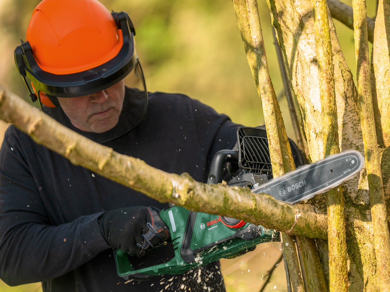 Denne kjedesagen fra Bosch er utviklet for rask og effektiv kapping av store greiner og tømmerstokker.
