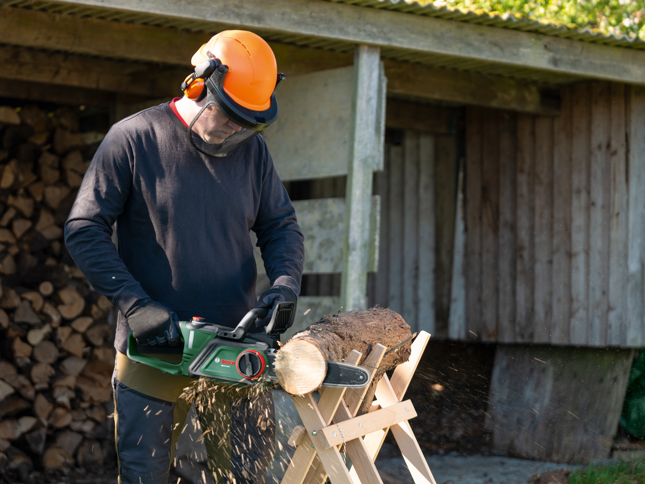Denne kjedesagen fra Bosch er utviklet for rask og effektiv kapping av store greiner og tømmerstokker.