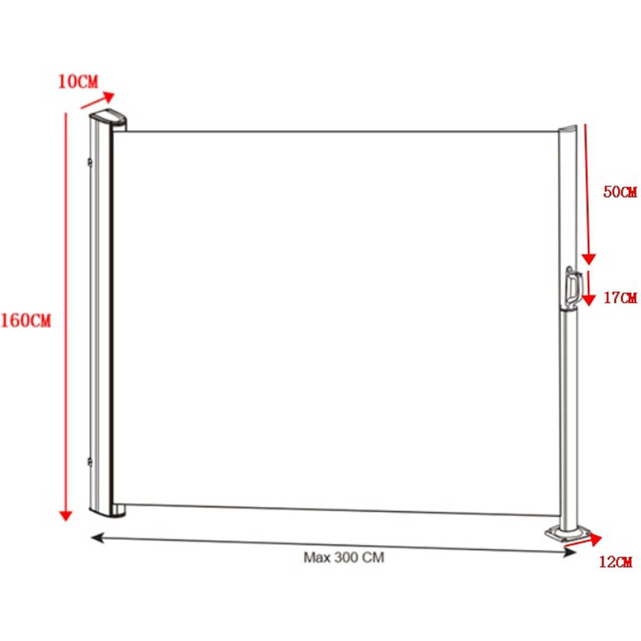 Materiale duk: 180 g/m² polyester, PU-belagtRamme: sort metall med pulverlakkeringInkludert i pakken: beslag, skruer og plugger for veggmontering, beslag, skruer og plugger for montering av stolpefot i fundamentTekniske spesifikasjoner
