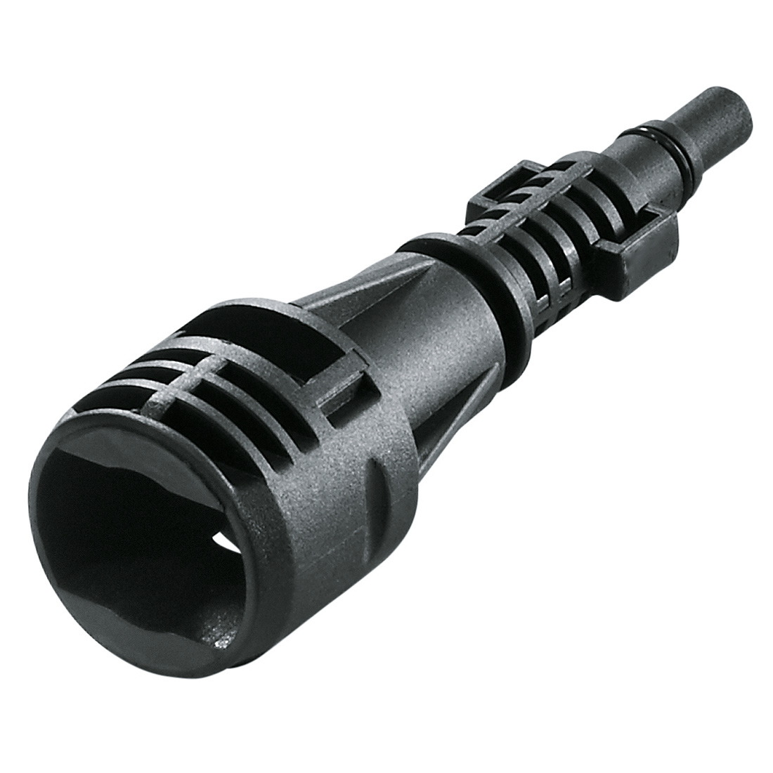 Adapteren passer til det meste av tilbehør fra Kärcher, og kobles enkelt direkte på pistolen.