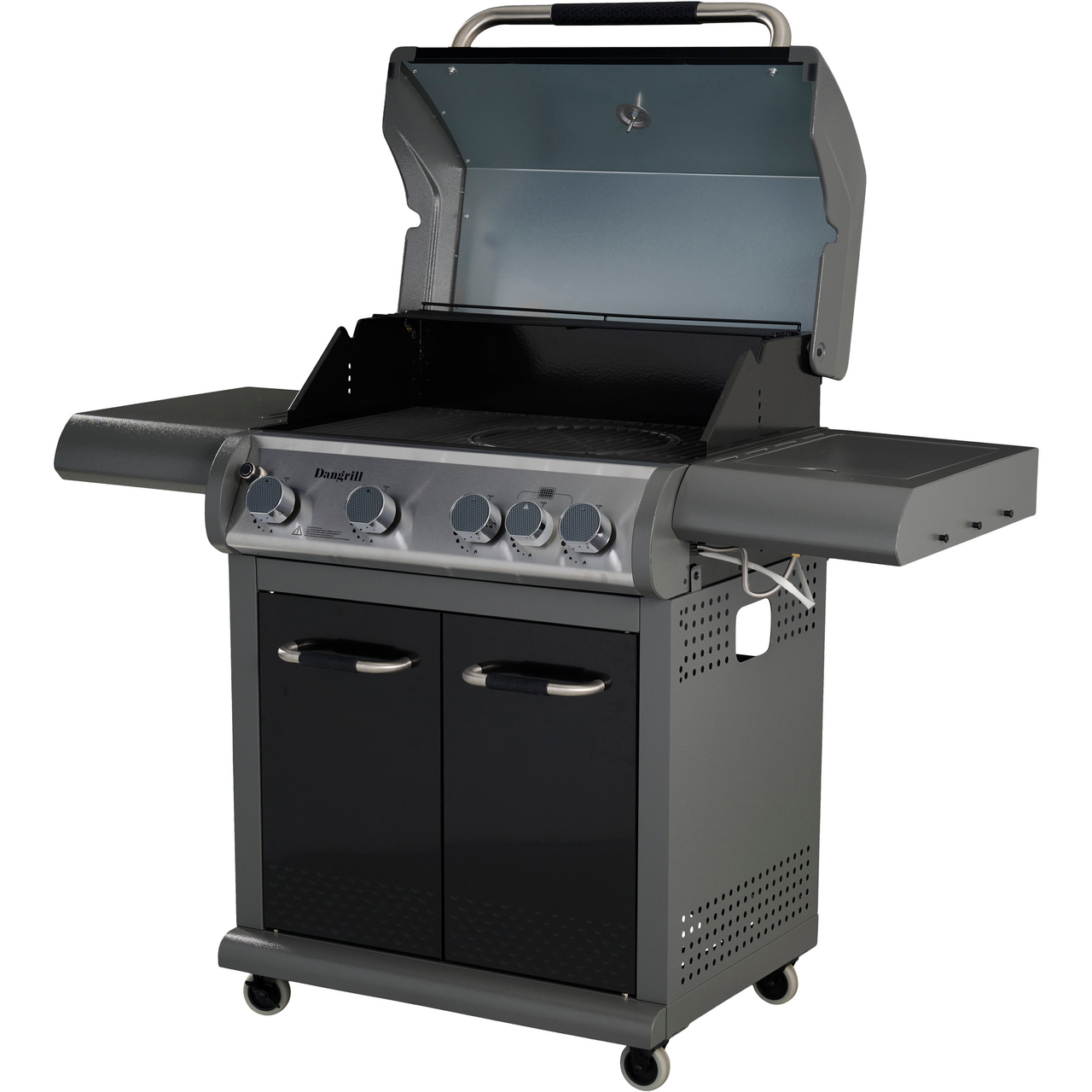 Denne gassgrillen fra Dangrill er utstyrt med fire brennere, samt en power burner med infrarød keramikk for ekstra høy varme.