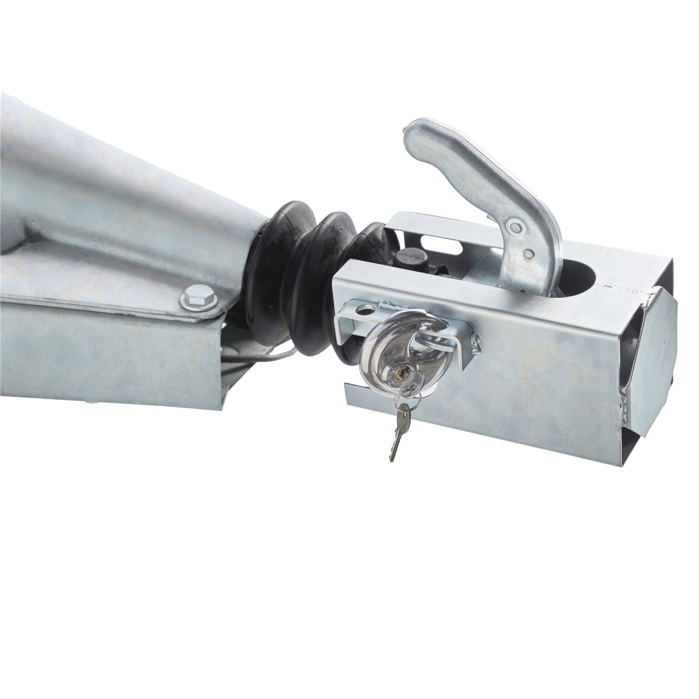 Tilhengerlås med universell tyverisikring, som er komplett med en robust hengelås som inkluderer nøkler.