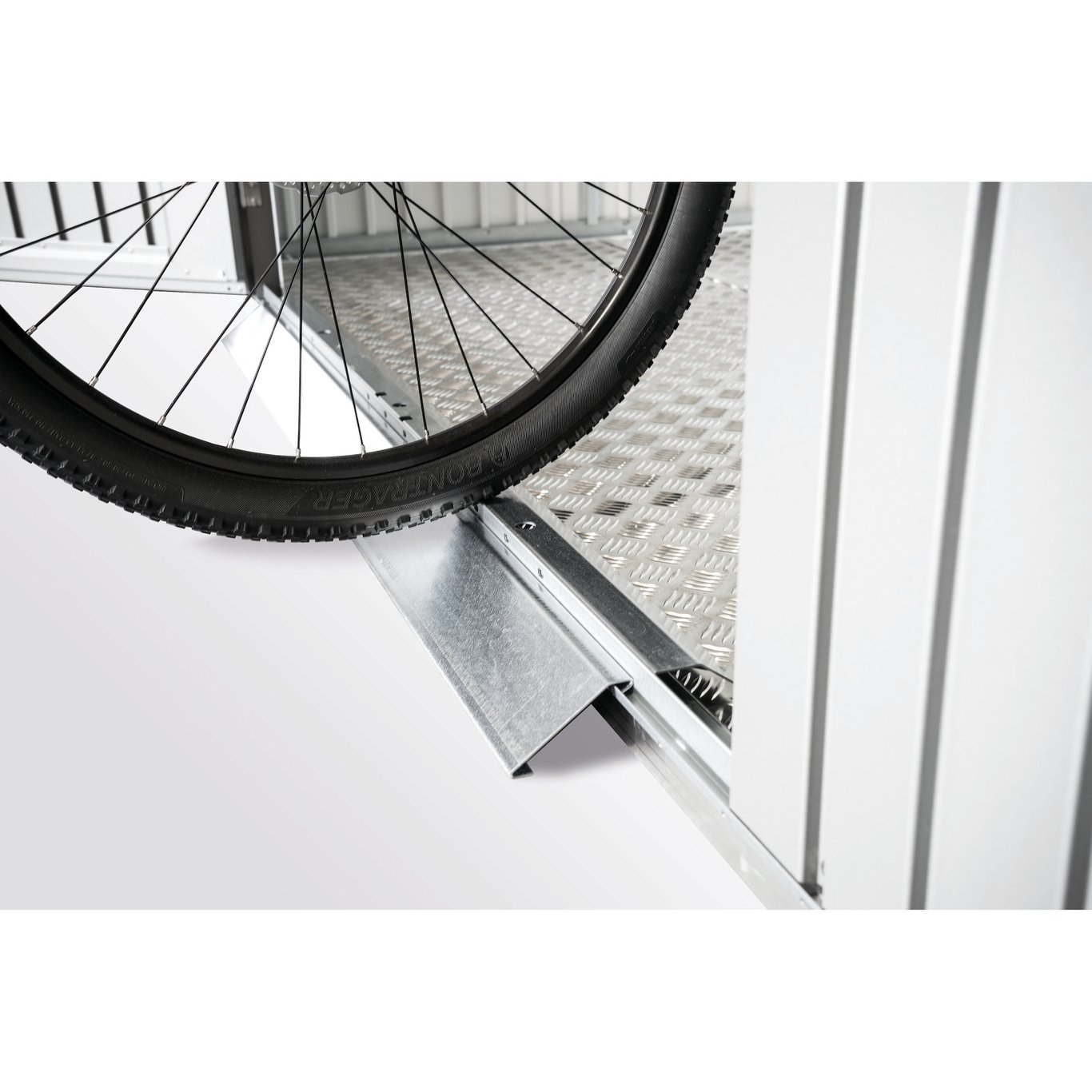 - Rampe for enkel inn- og utkjøring av sykkel, gressklipper og andre maskiner