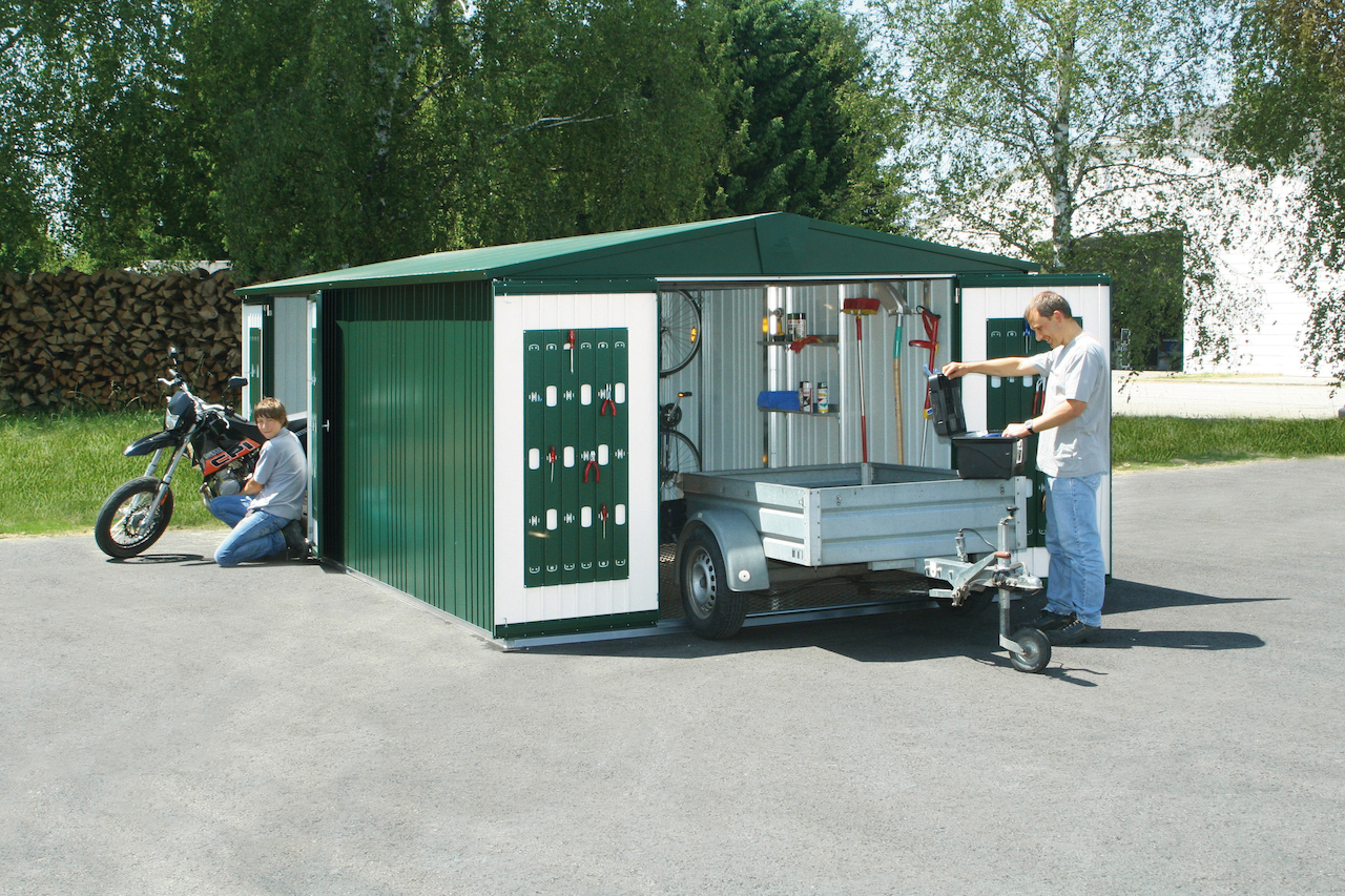 Praktisk redskapsbod for oppbevaring av f.eks verktøy og hageredskaper. Dette er den ultimate uteboden som oppfyller alle kravene for sikkerhet og funksjonalitet, ikke minst er den 100% vedlikeholdsfri. Boden er laget av varmgalvaniserte, polyamidbelagte stålplater og har skruer, bolter og hengsler av rustfritt stål. De solide materialene gjør boden motstandsdyktig mot snømengder opp til 150 kg pr m2. Redskapsboden kommer med 4 stk verktøyhenger og 2 hyller med beslag.