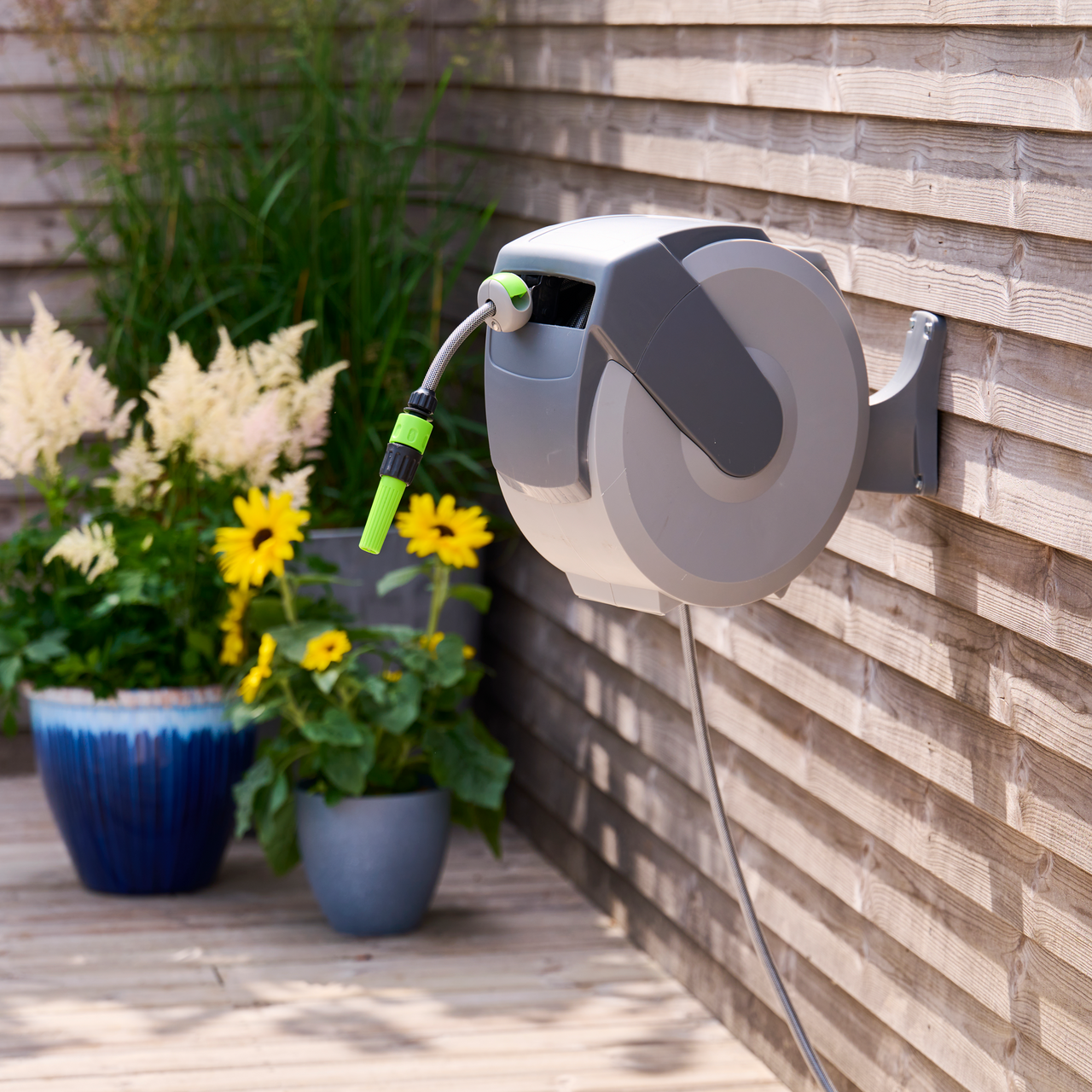 Automatisk opprullingJusterbar stoppklossPasser de fleste hagesystemerKomplett settTekniske spesifikasjoner