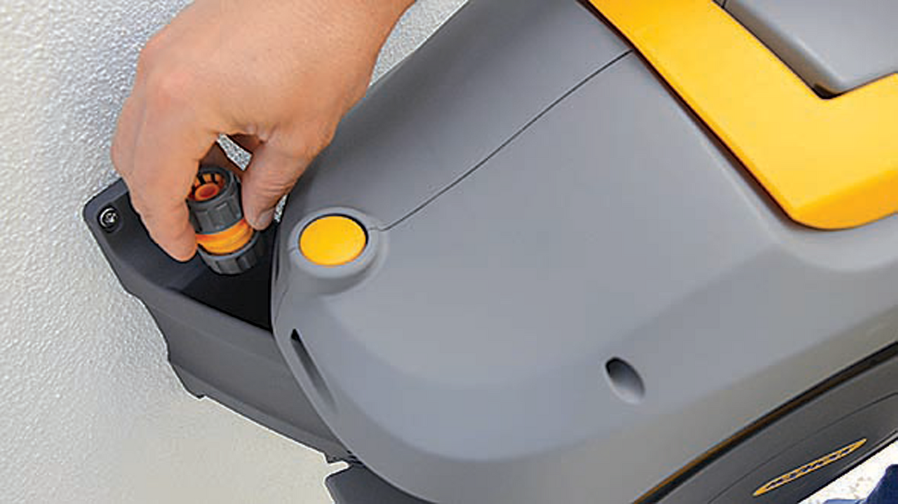 Slangetrommelen har en automastisk tilbaketrekk, slik at etter endt bruk kan du dra litt i slangen - hvor den vil trekke til seg slangen som er dratt ut. Den vil ikke trekke seg tilbake under bruk. Ønsker du lenger slange, kan du dra det du ønsker - forså å forsette å spyle.
