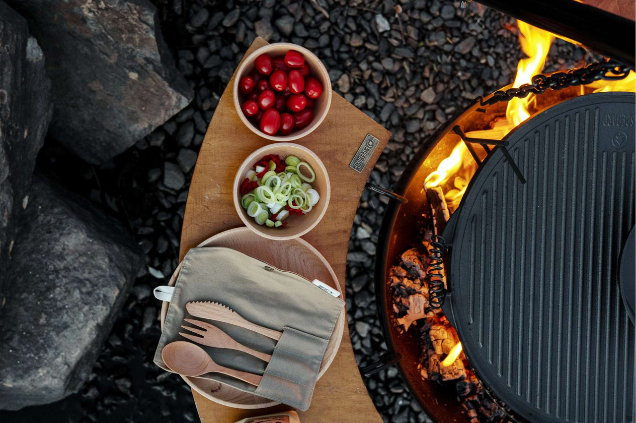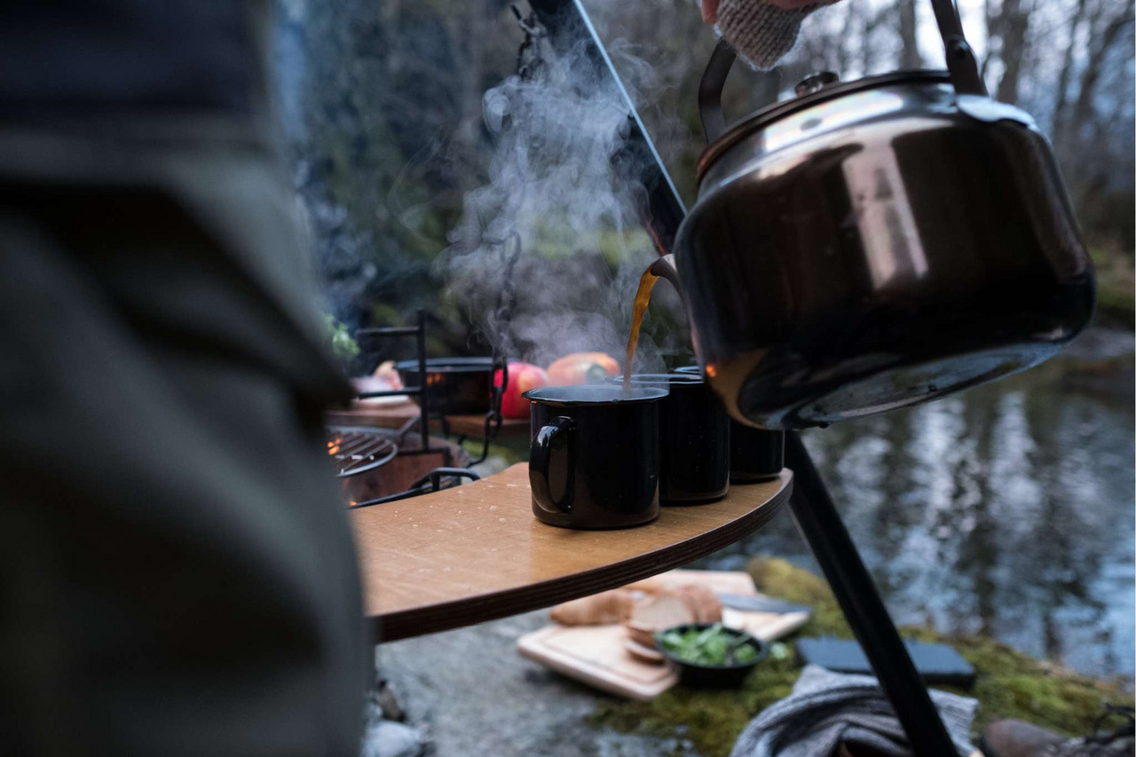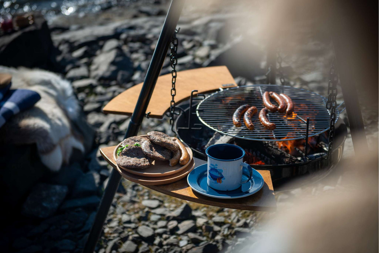 Ekstra arbeidsflateHektes enkelt på bålpannaPraktisk ved matlaging og servering