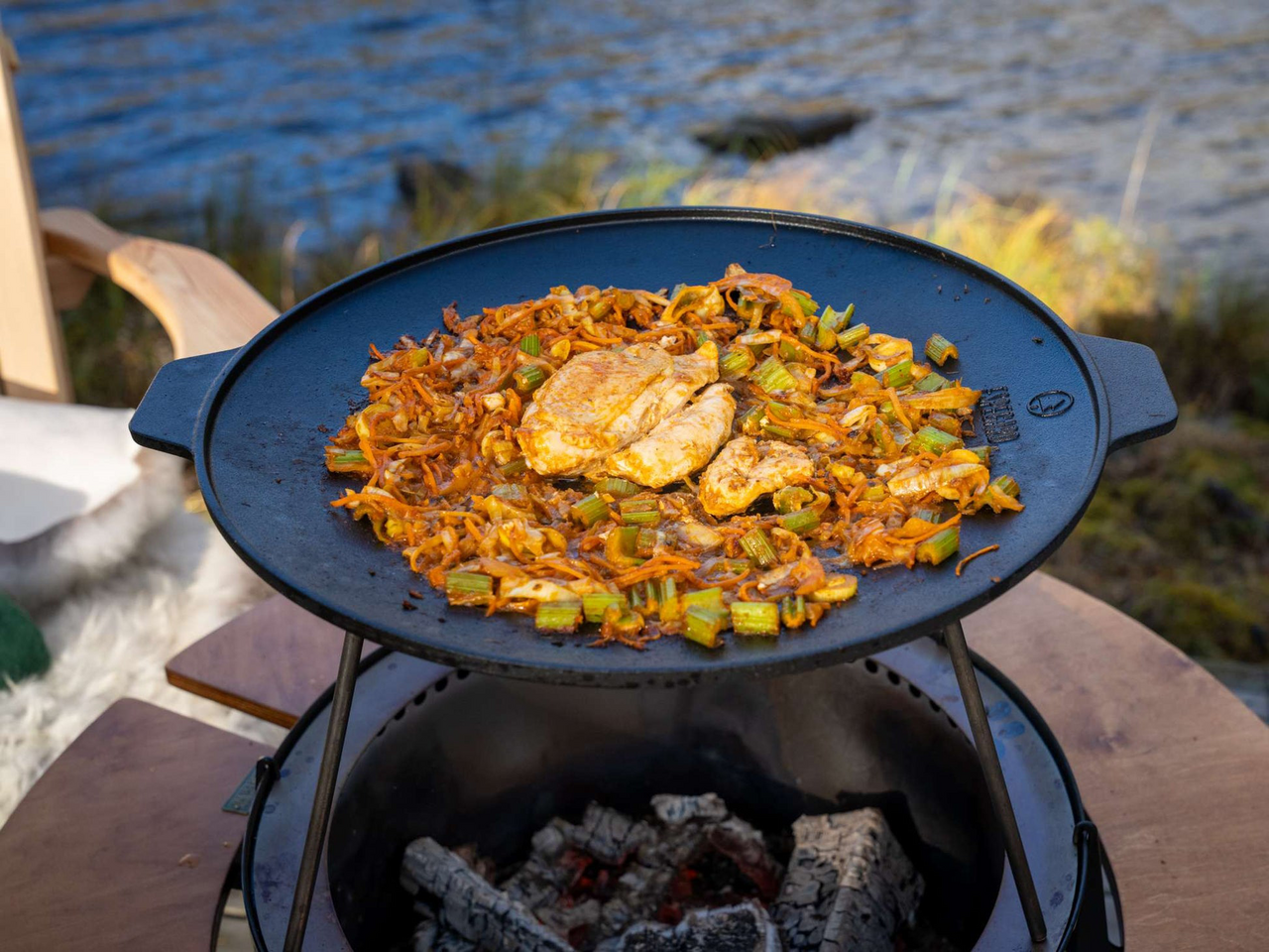 Denne steikehellen er laget for deg som vil lage mer enn bare enkel grillmat over åpen ild. Støpejernet holder godt på varmen og gir en jevn stekeflate, mens de stabile beina hever hellen opp fra bålet for trygg og kontrollert matlaging. Den egner seg godt til alt fra grønnsaker og kjøtt til pannekaker og andre turfavoritter.