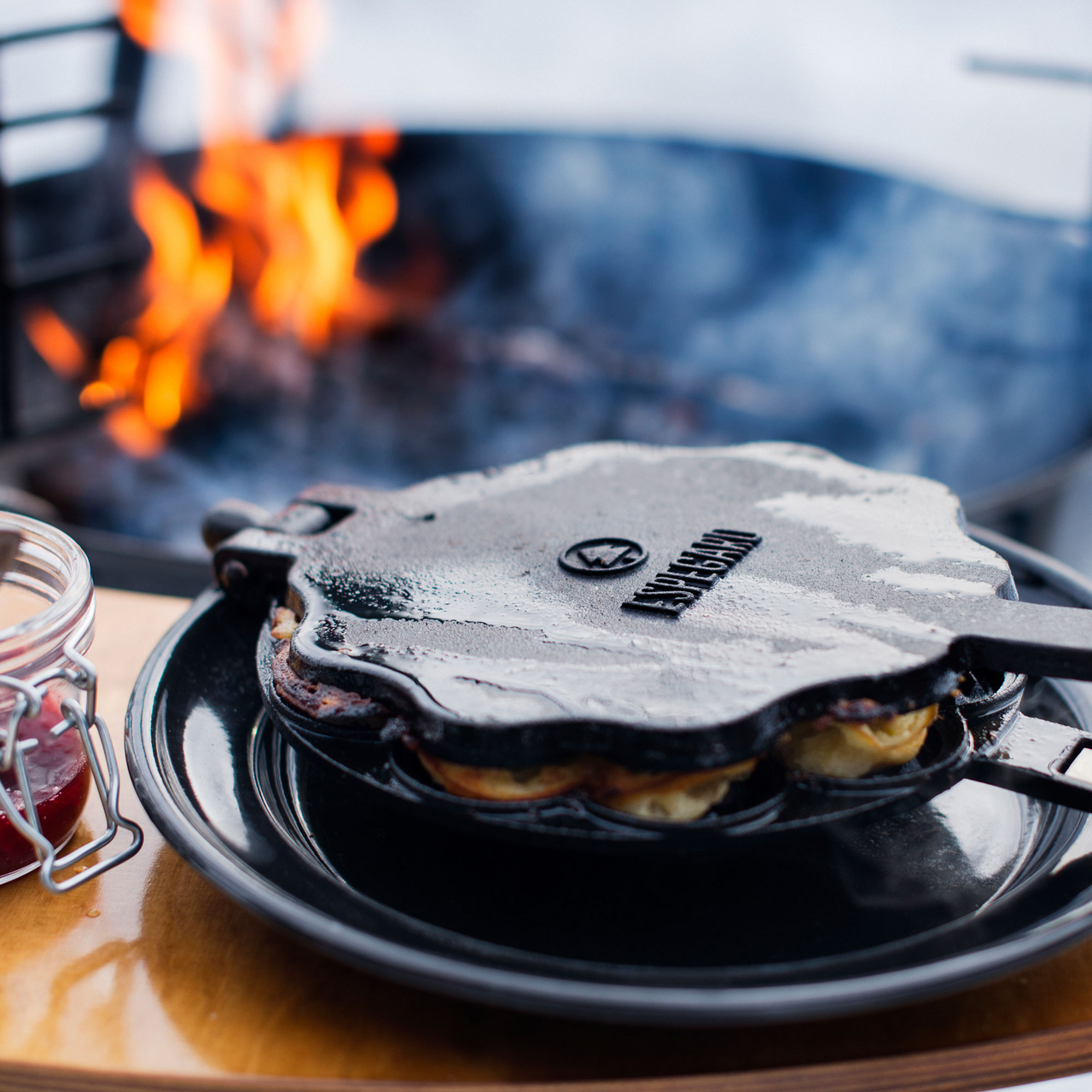 Dette vaffeljernet fra Espegard kan brukes på grillristen eller direkte over flammene.
