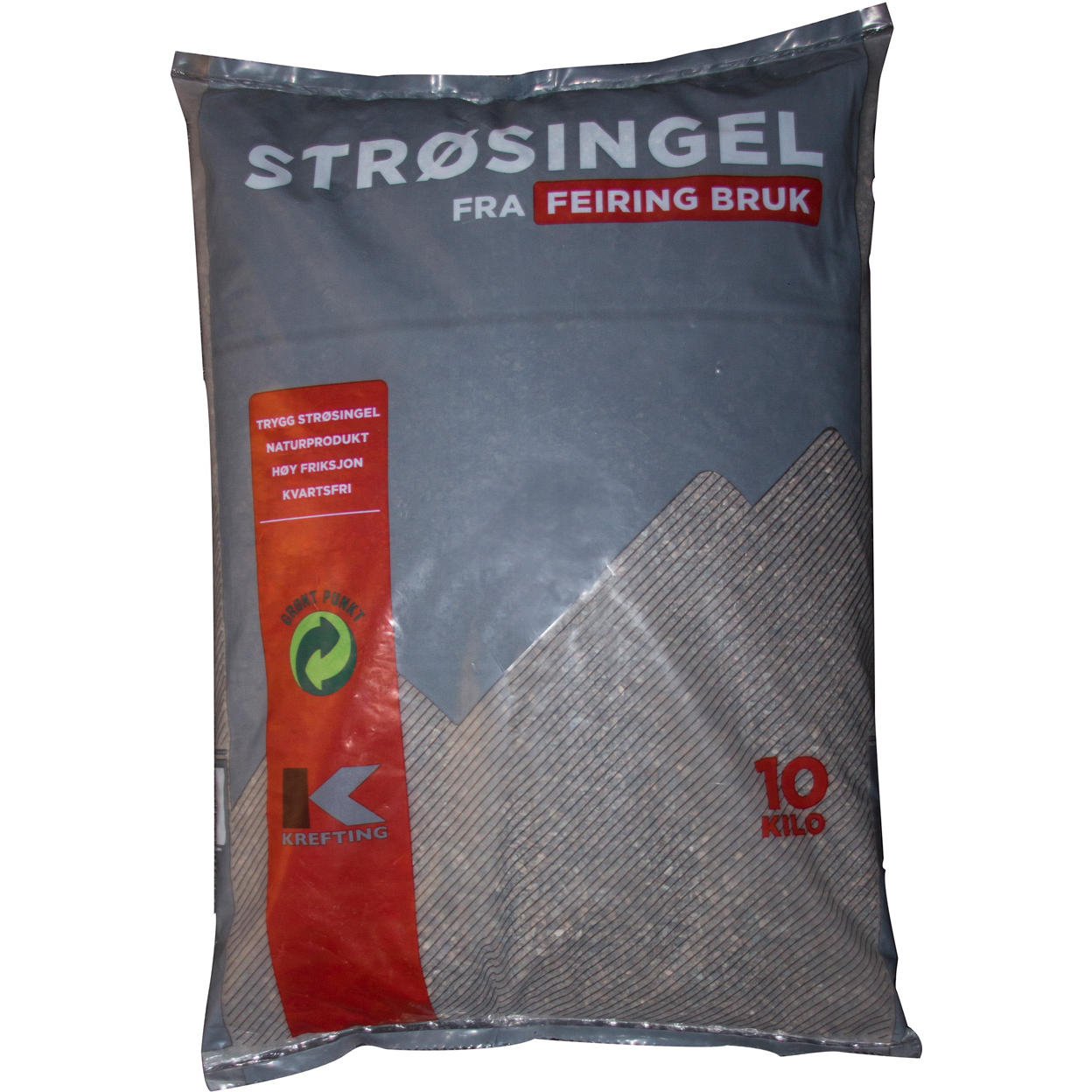 Unik finkornet strøsingel. Bruk til glatte og isete underlag. Rent norsk naturprodukt, kvartsfri og støvfri, bra for miljø og helse.