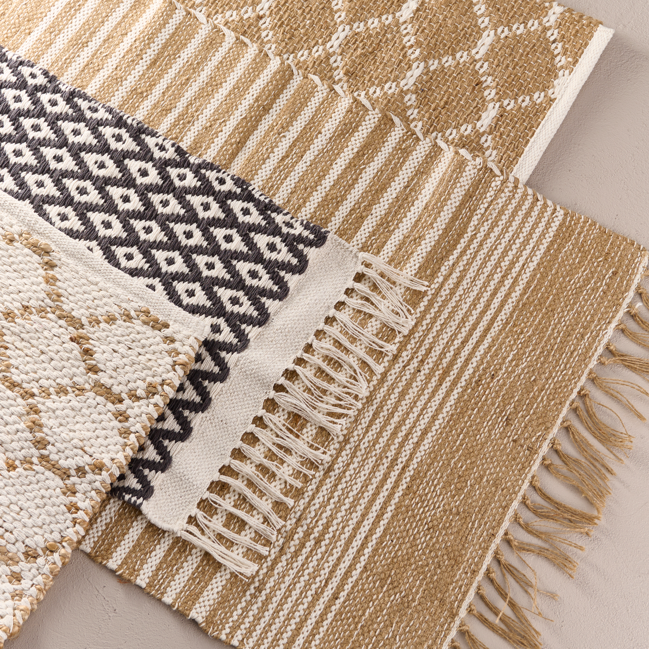 - Materiale, beige med striper: 30 % bomull, 70 % jute