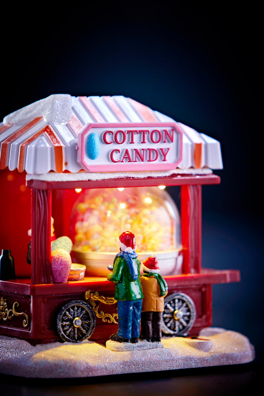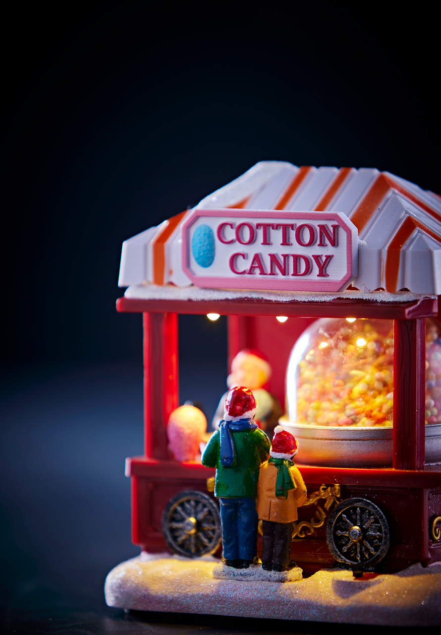 Denne sukkerspinnvognen fra Day passer perfekt til å sette stemningen på et bord eller som en del av en større juleby. Belysningen skaper en varm og innbydende atmosfære.
