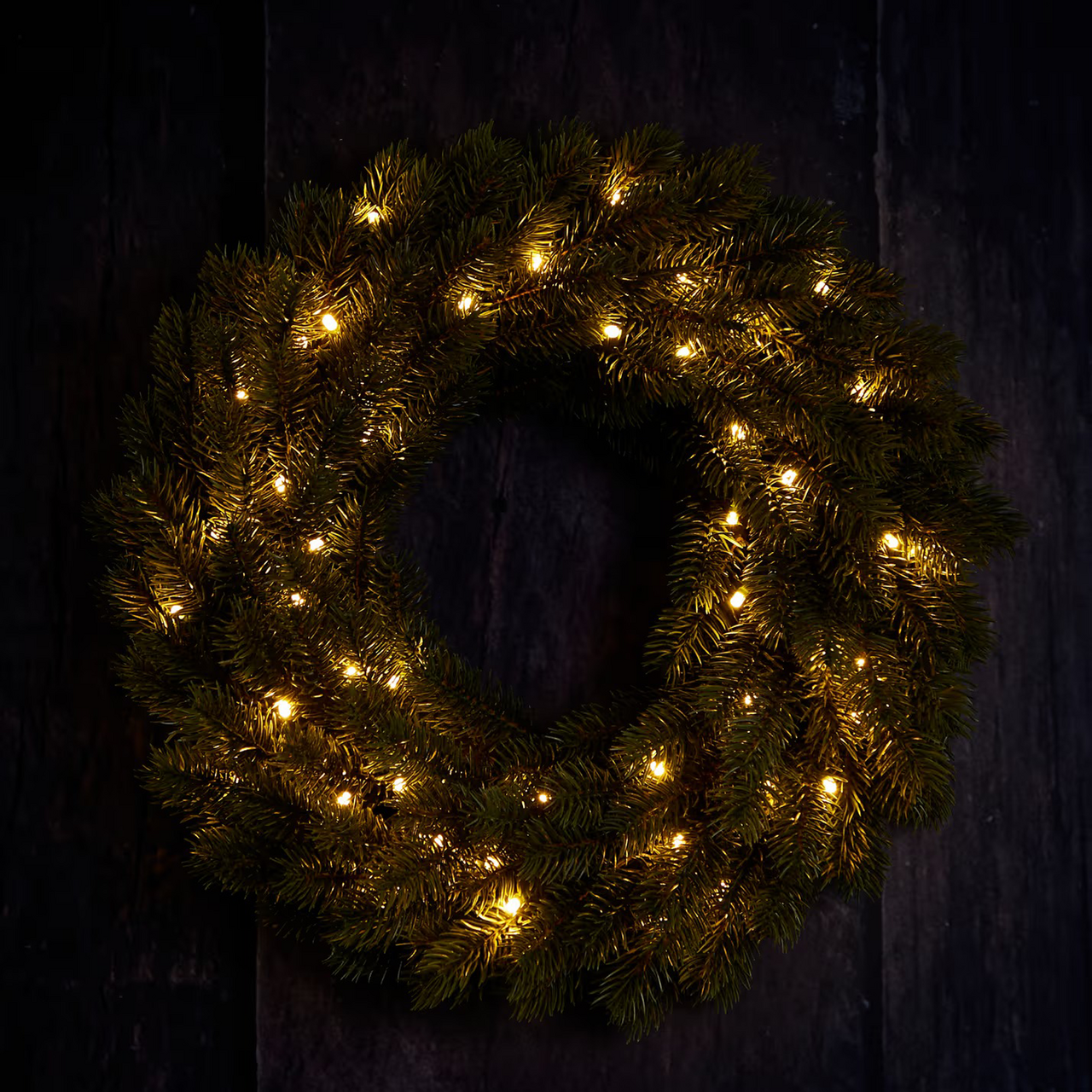 Denne julekransen gir et varmt lys, samt at den passer ideelt på dør, vegg eller som en del av dekorasjon inne.