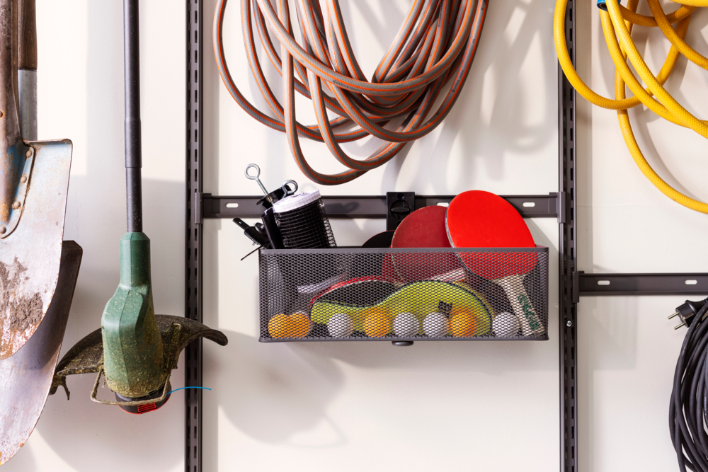Den festes enkelt på Garage+ oppbevaringslist og lar luften sirkulere, samtidig som innholdet er lett å se og nå.