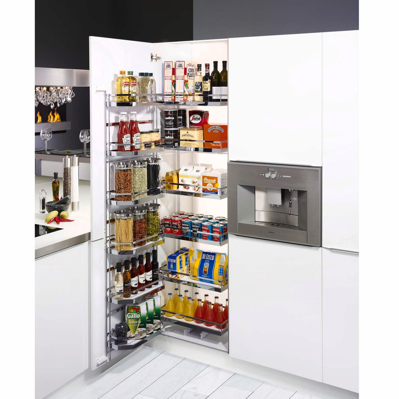 Denne hyllen fra Kesseböhmer monteres på skapdøren i høyskap.