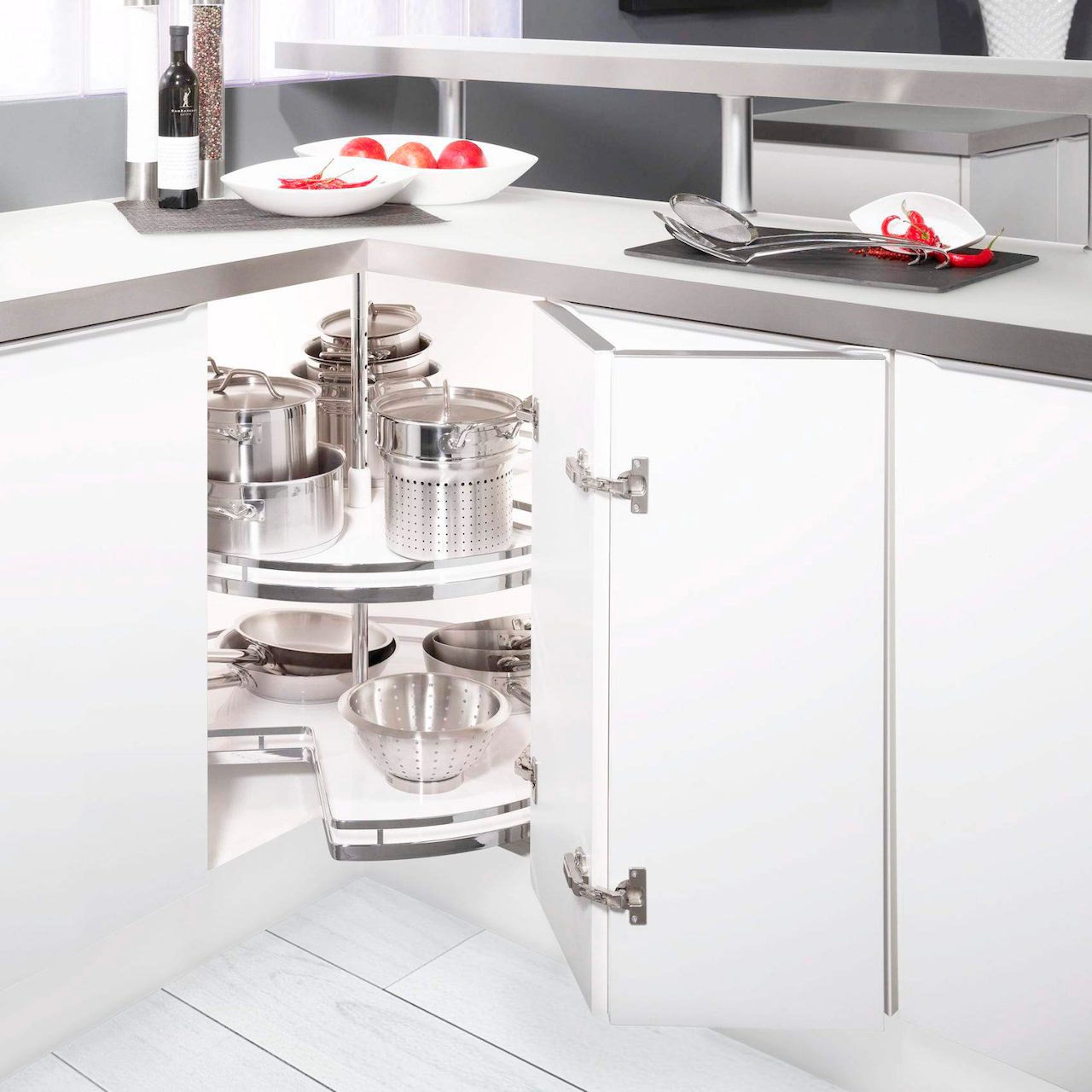 Denne karusellen fra Kesseböhmer er laget for praktisk oppbevaring i hjørneskap, og levers med to hyller i 3/4 størrelse.
