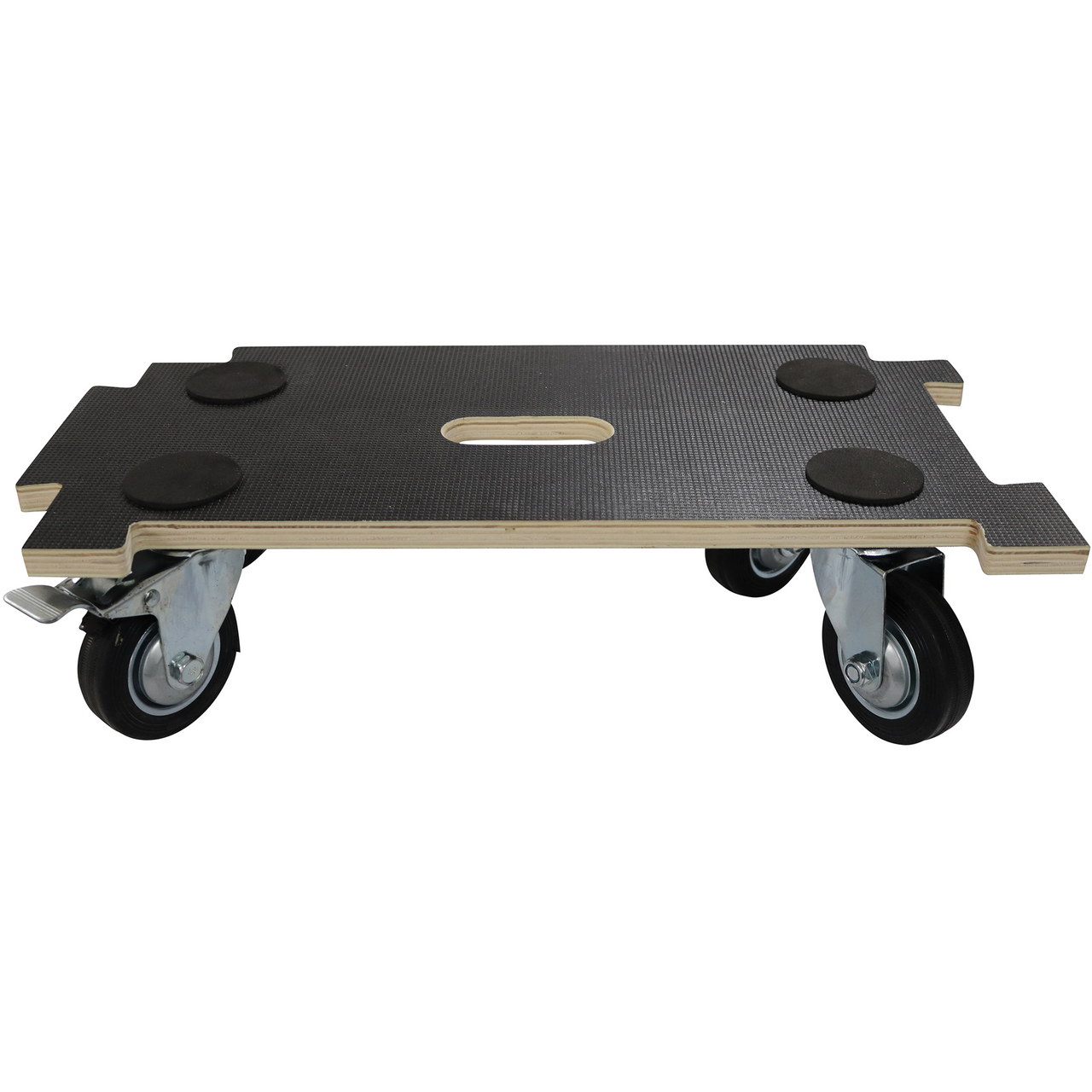 Bæreevne: 400 kgMateriale: 18 mm kryssfiner med 4 runde sklisikre feltPlatetykkelse: 18 mmHjul: 4 gummihjul, 2 med bremsHjulstørrelse: Ø100 x 25 mmMål(L x B x H): 58 x 29 x 15 cmLeverandørens varenummer58823