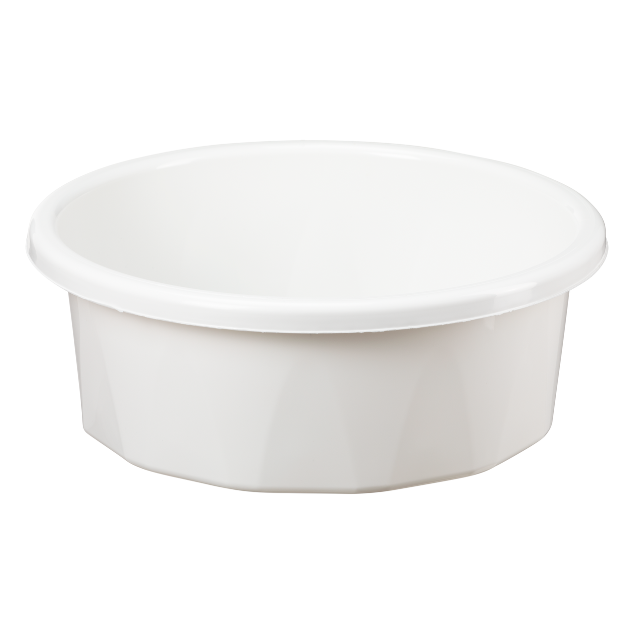 Balje som kan brukes både på badet og på kjøkkenet for rengjøring og matlaging. Det er en kant hele veien rundt for enkelt grep og transport av innhold.