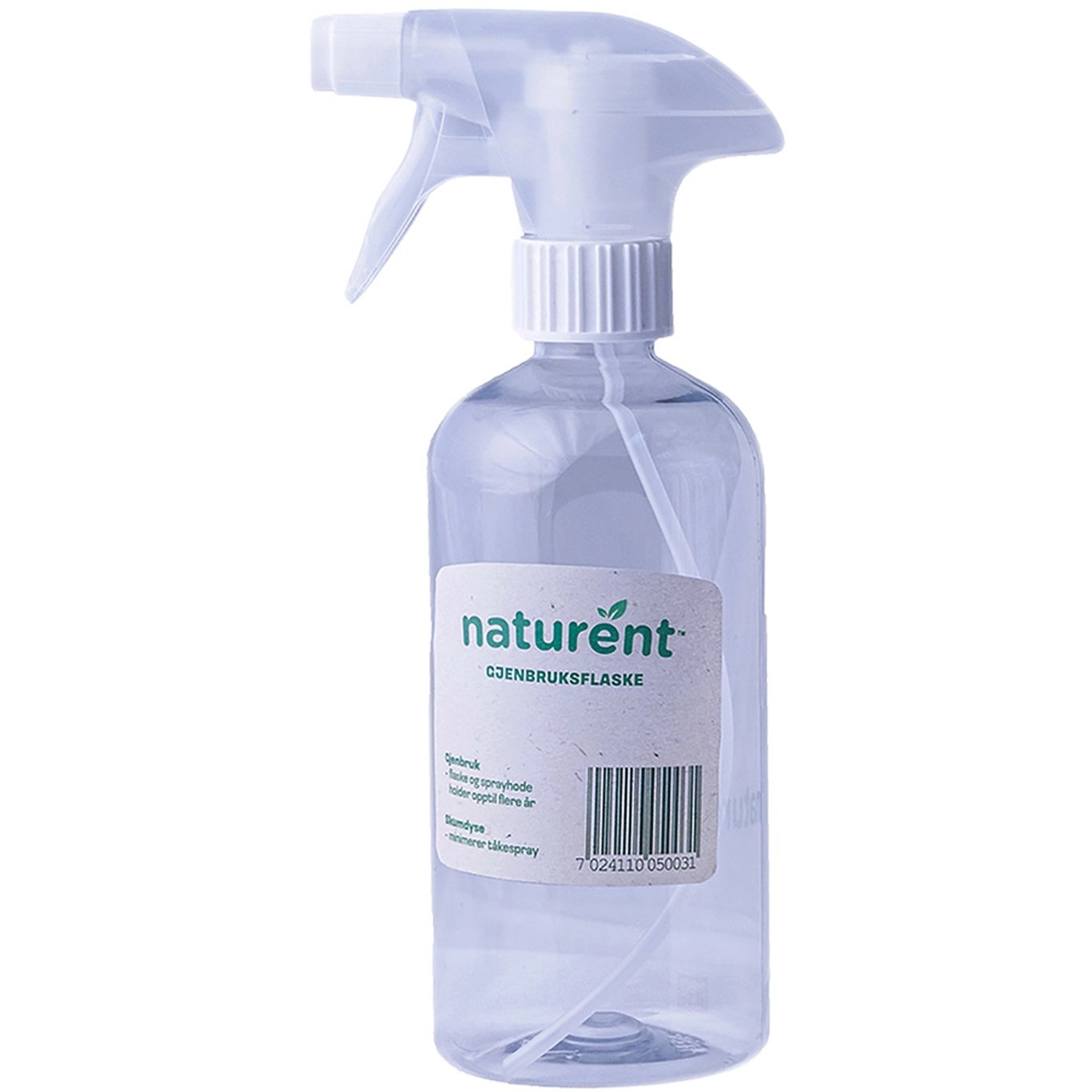 Denne gjenbruksflasken fra Naturent er et godt bærekraftig valg som brukes til å blande Naturent spraykonsentrat til kjøkken, baderom og multi/universal.