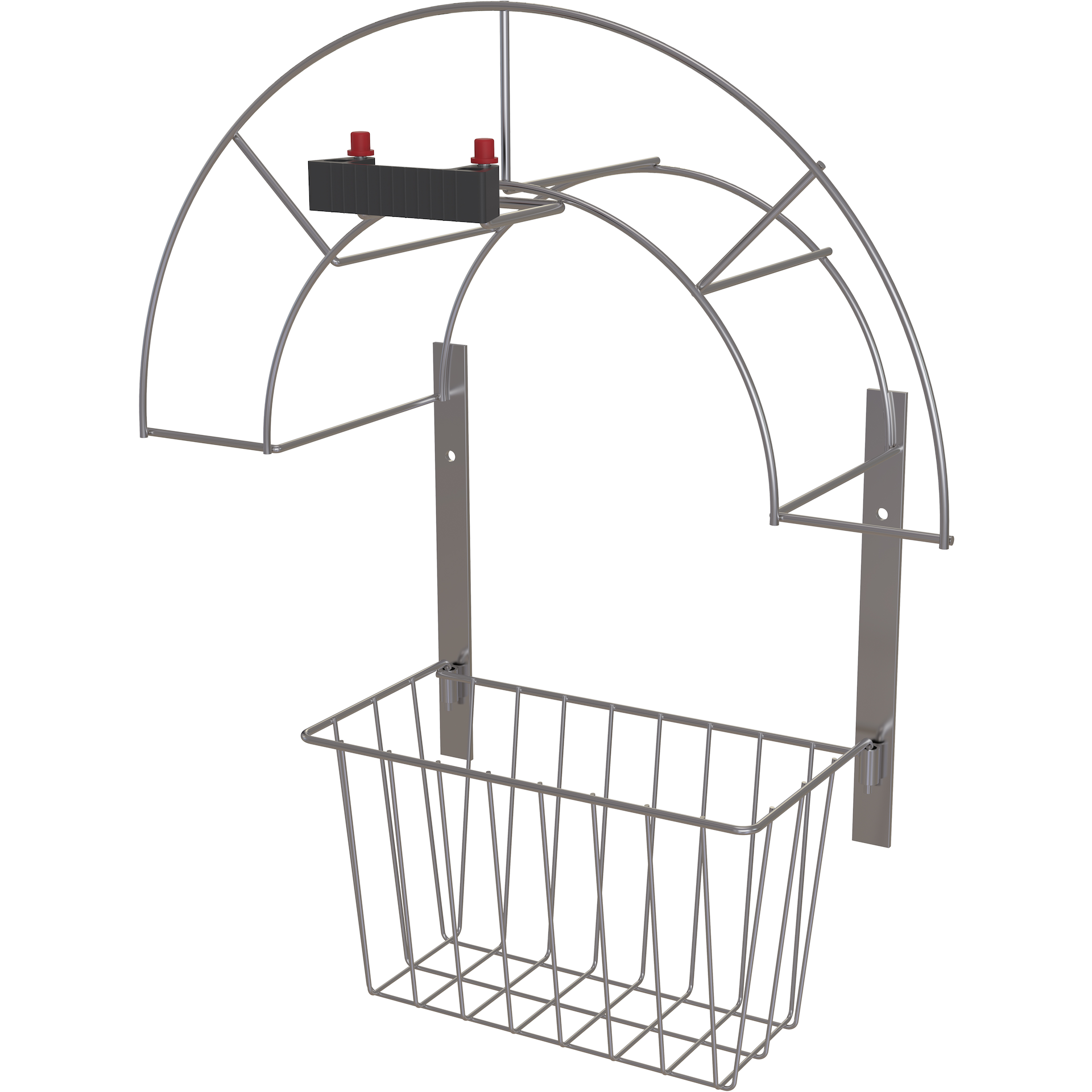 Solid holder for sentralstøvsugerslange, teleskoprør og munnstykker. For veggmontering.